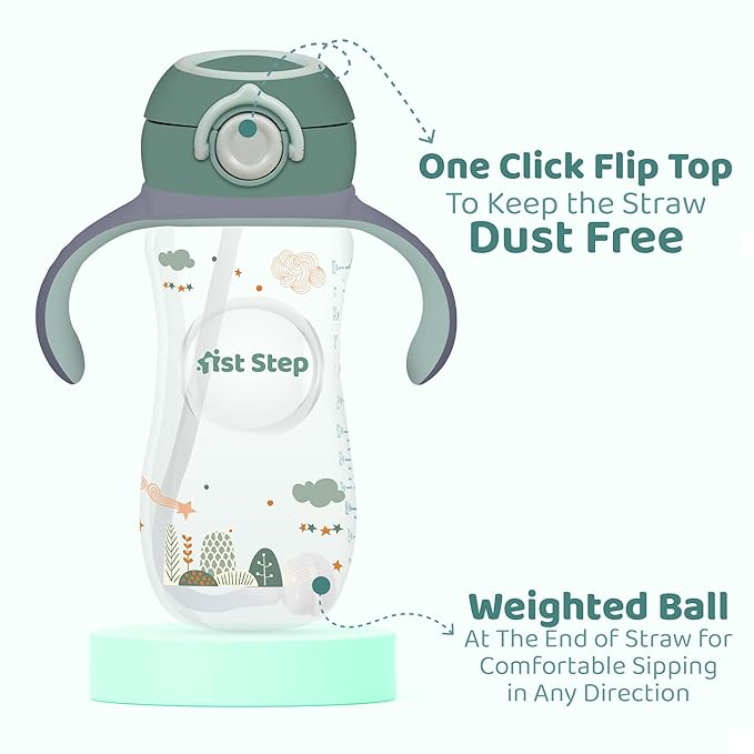 1st Step Silicone Straw Sipper with dual Handle for Baby – 330ml, Dark Grey