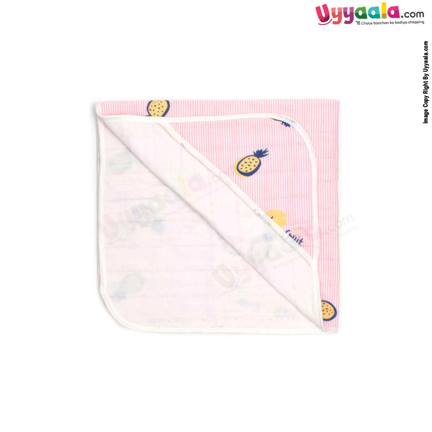 Double Layered Hooded Swaddle Wrapper with Stuff & Waist Belt Pineapple Print for Babies 0+m Age, Size (92*88cm)-Pink