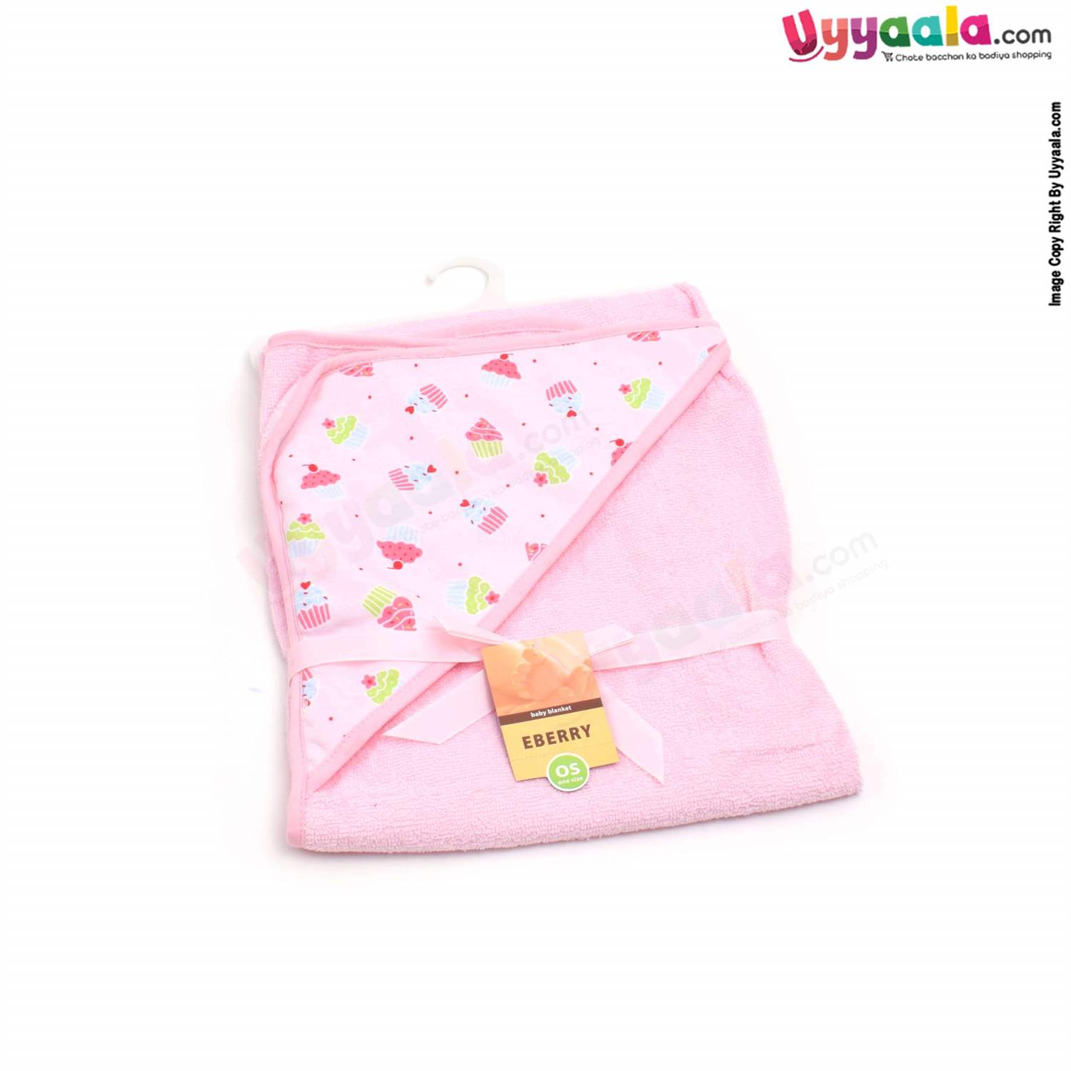 EBERRY Terry Hooded Towel with Ice Cream Print 1pc ,0+m Age ,Size (76*74) – Pink