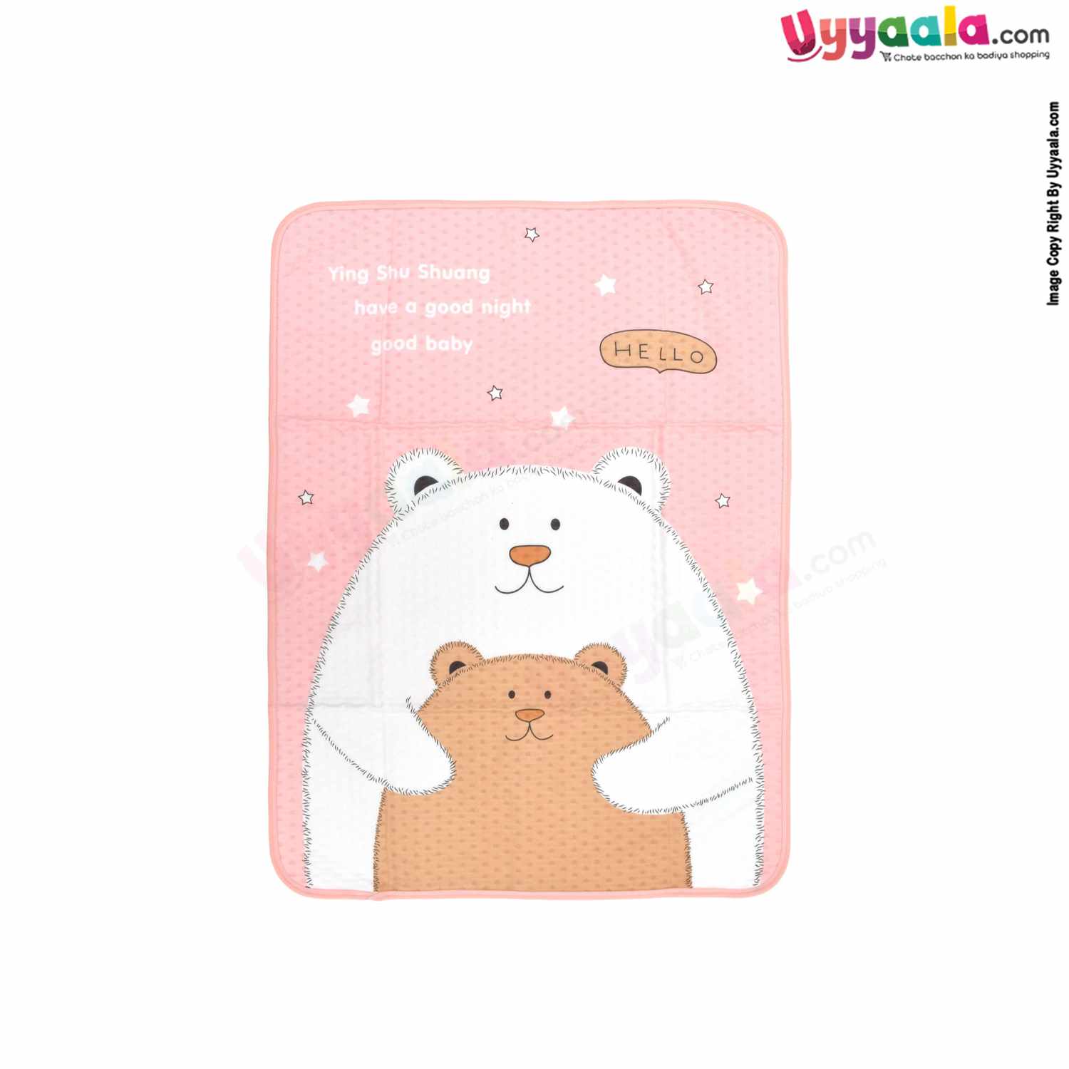 Fancy Premium Baby Mattress Protector Dry Sheet Water Proof, One Side Cotton & Another Side PVC for Babies with Bear Print, Medium Size(80*60cm)
