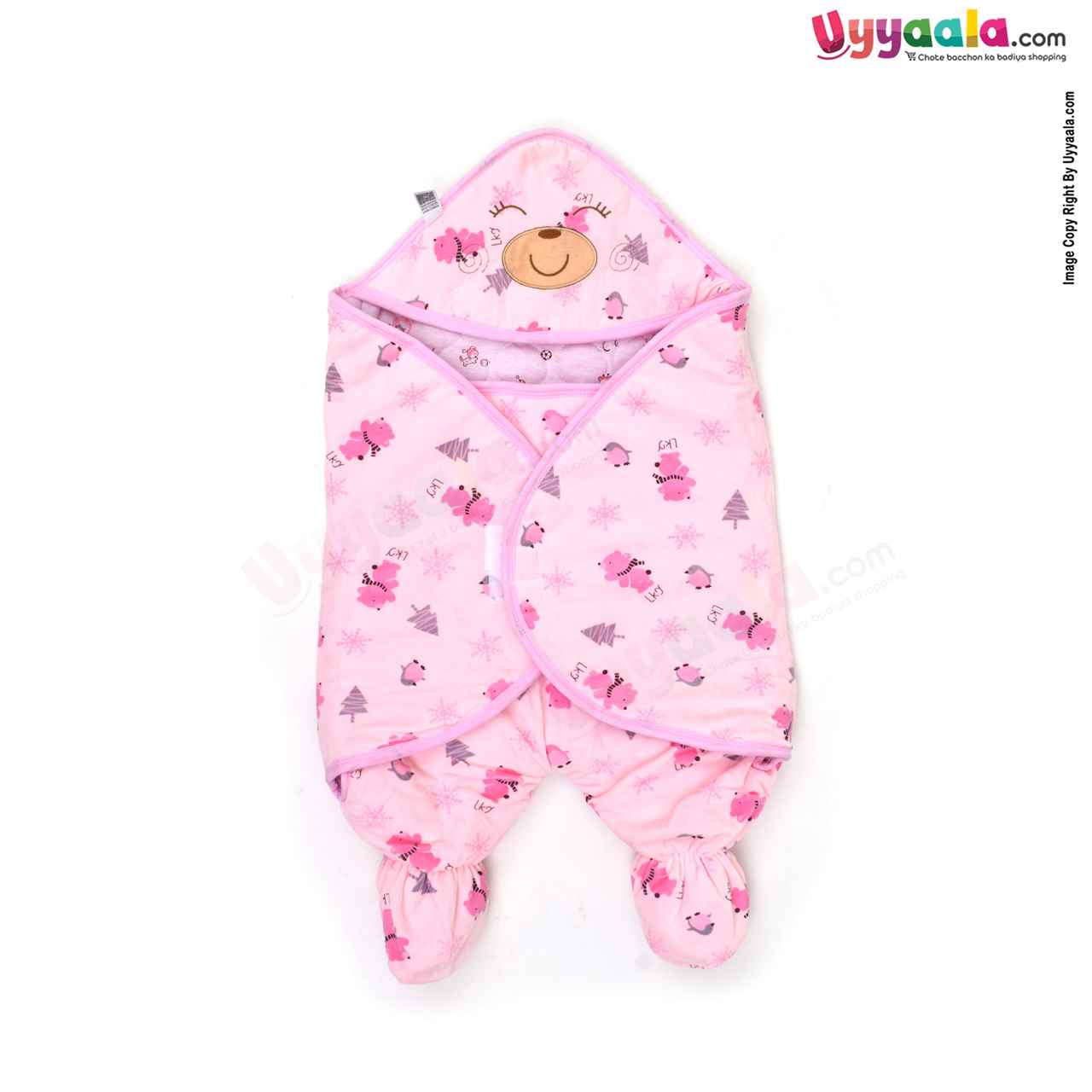 Hooded Soft Fur Leg Blanket Cum Wrapper For Newborn Babies – Pink, 0-6m