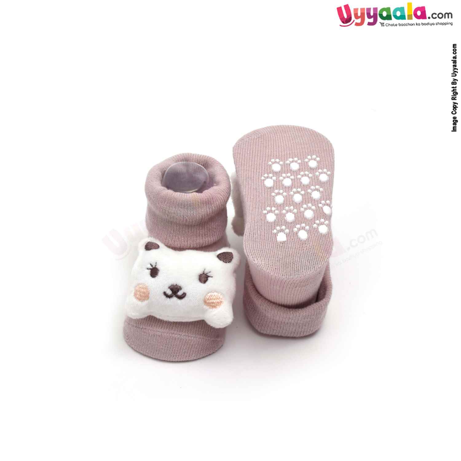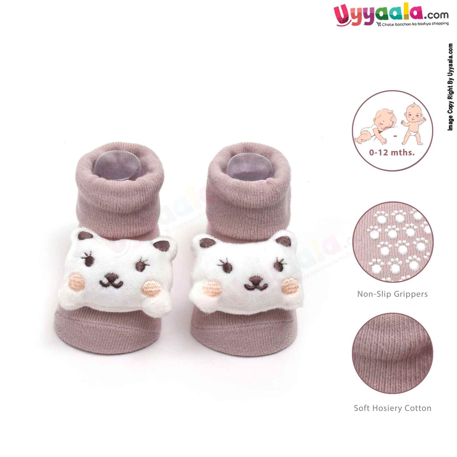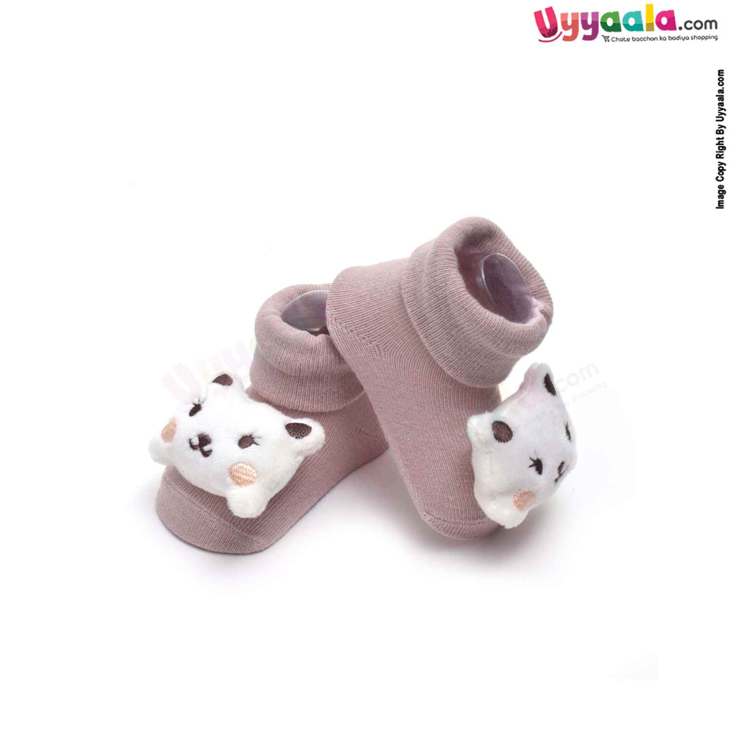 Hosiery Cotton Baby Socks with Hello Kitty Character ,0 to 12m Age- Brown