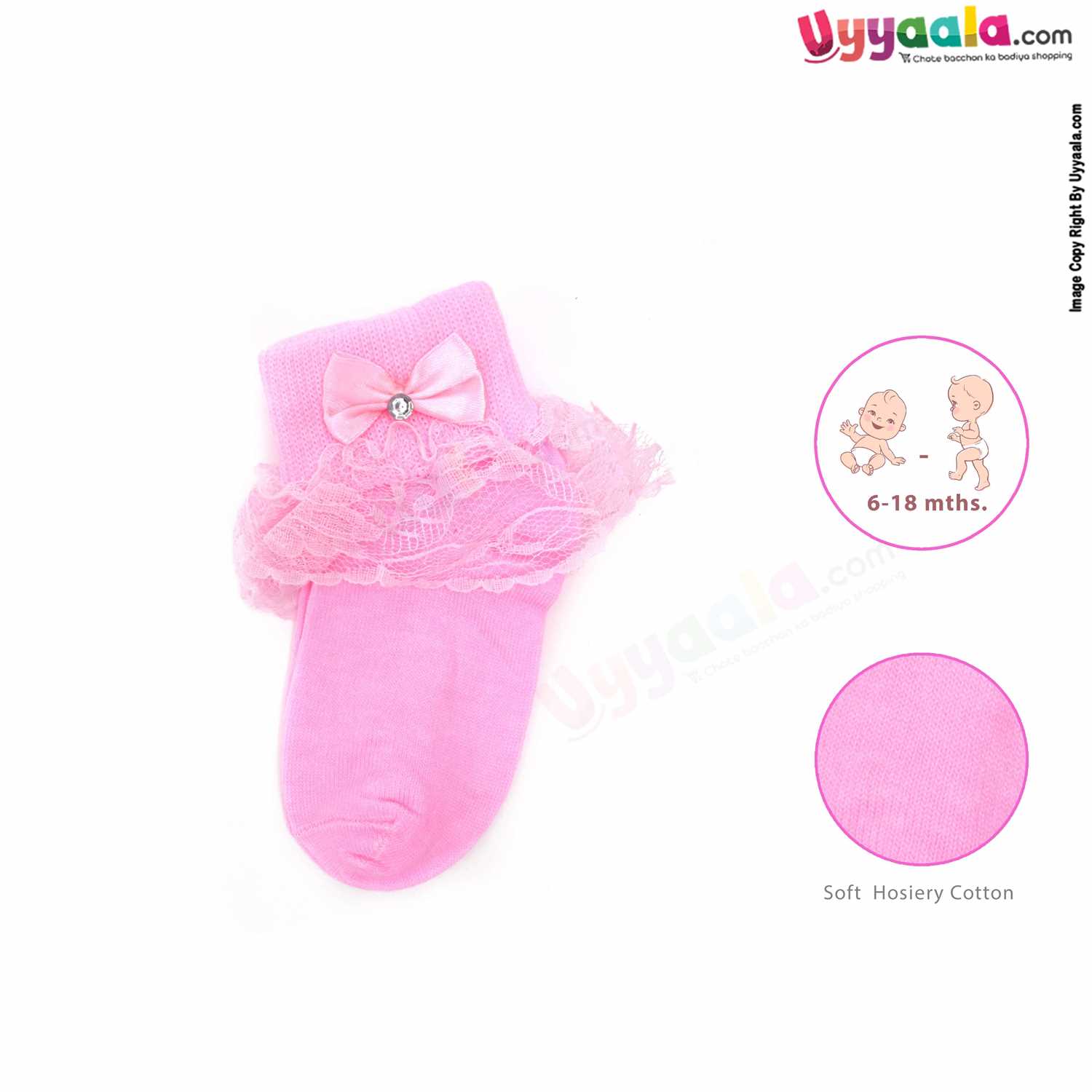 Hosiery Cotton Socks for Baby Girl Pack of 2, 6-18m Age – Pink & Light Green