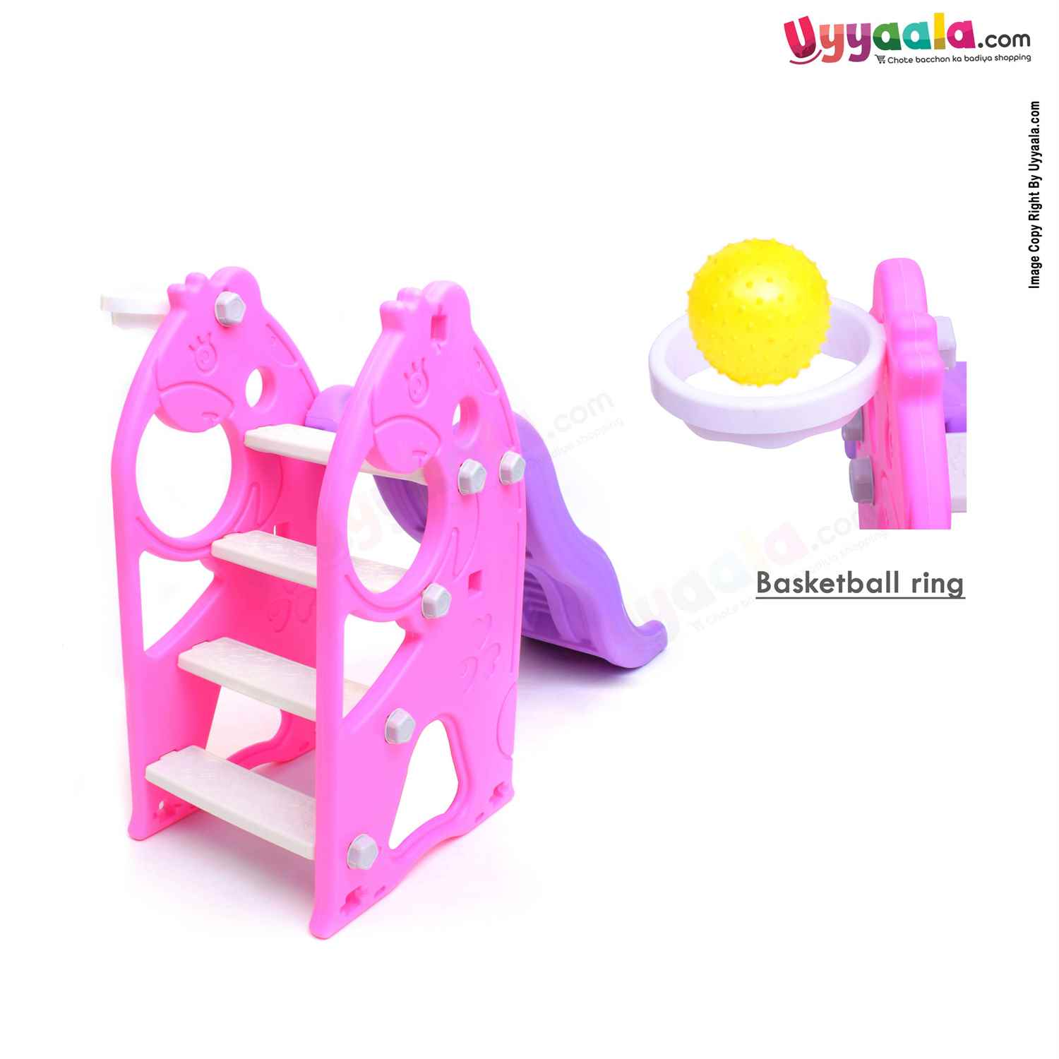 Indoor Slide for Kids1 Basket Ball Hoop 1 + Age Size 150*55*110cms-Pink-Purple
