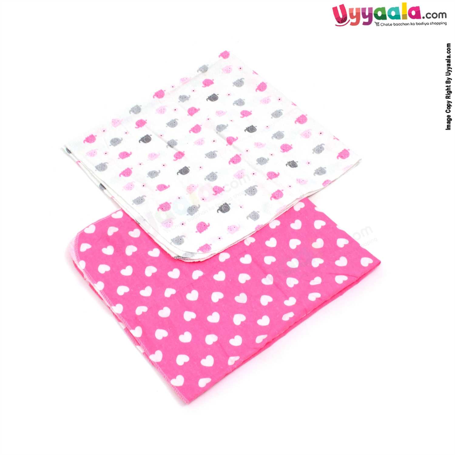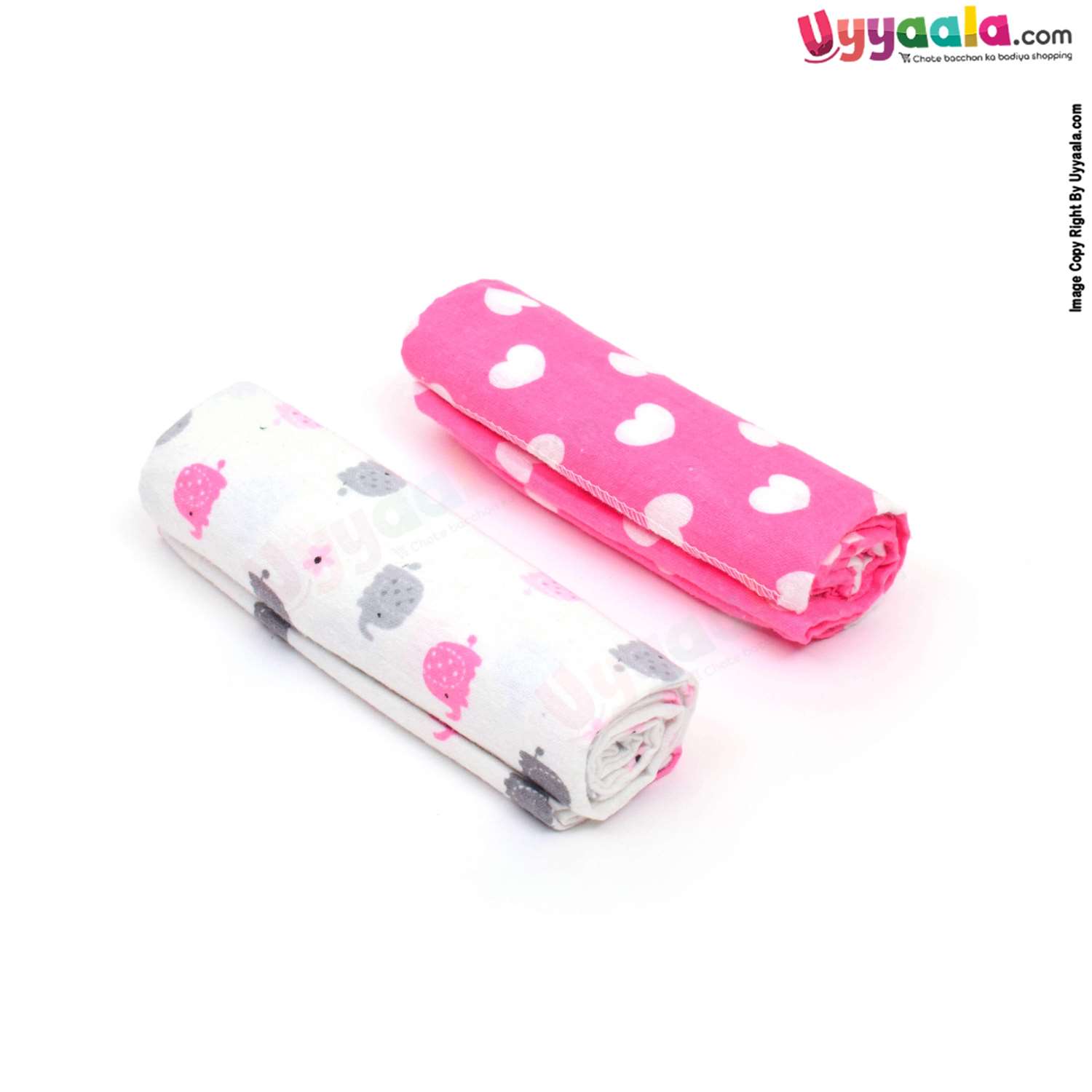 KOLACO Baby Soft Bath Towel with Elephant & Love Symbol Print Pack of 2 0+m Age, Size (74*73) – Dark Pink & White