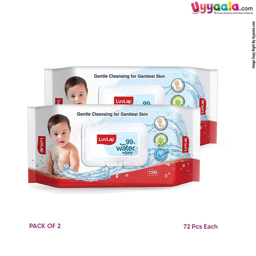 LUVLAP Water Wipes with Lid ,Pack of 2- 72pcs each