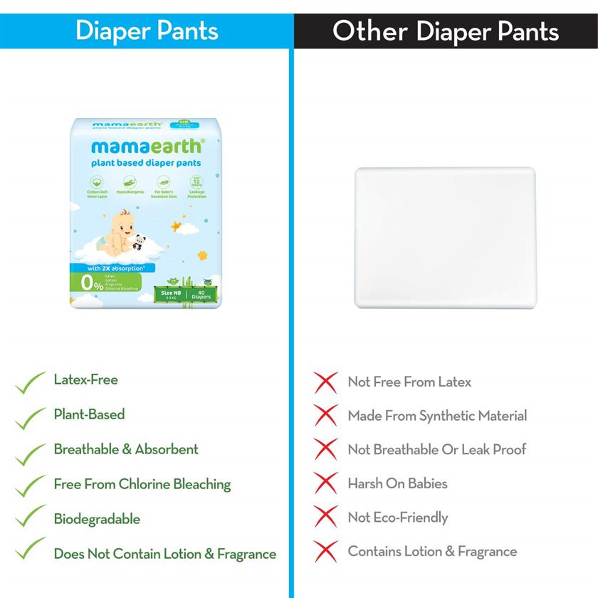 Tear-away sides for easy removal of soiled pants and disposal of the diaper in the dustbin.