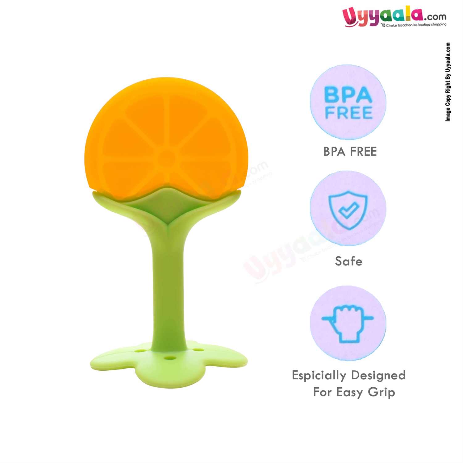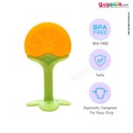 • Bright colored Orange shaped baby teether