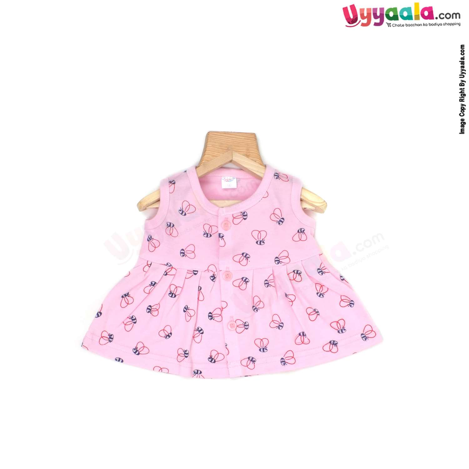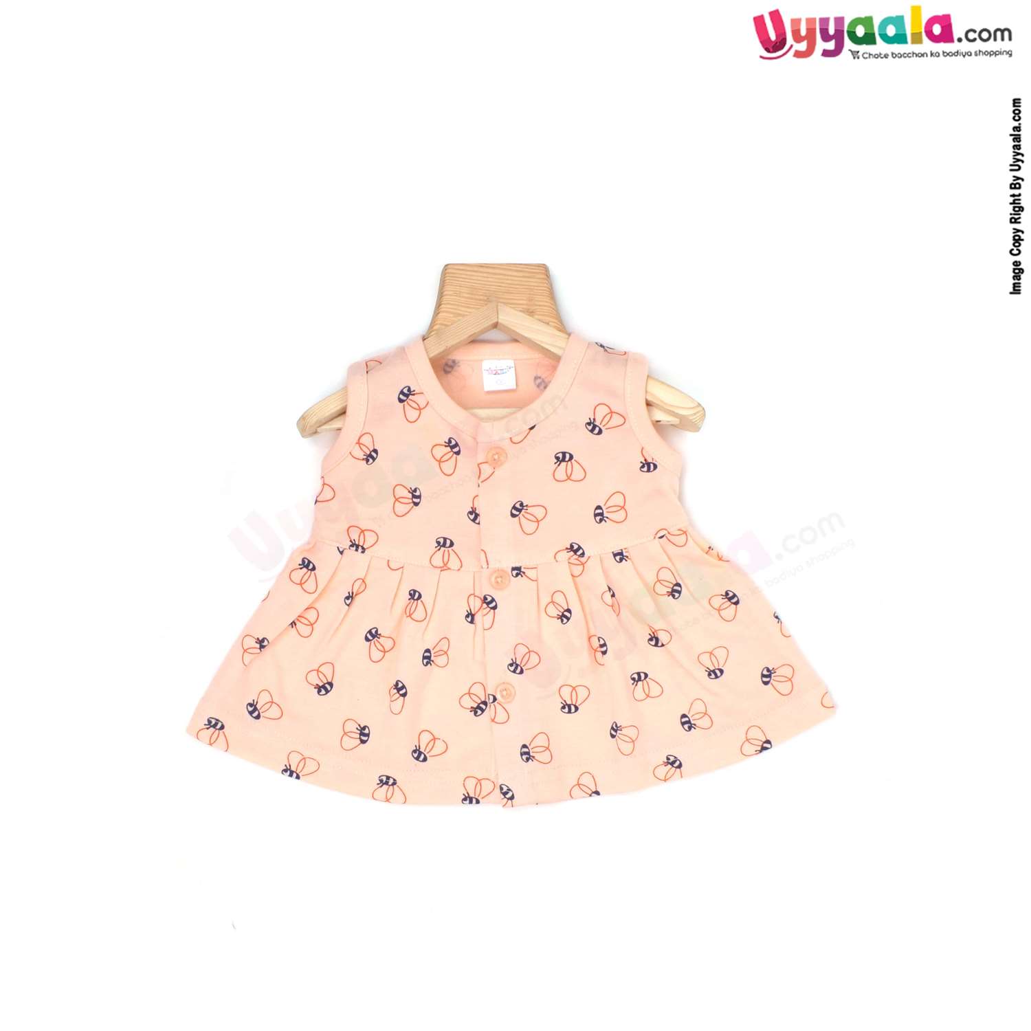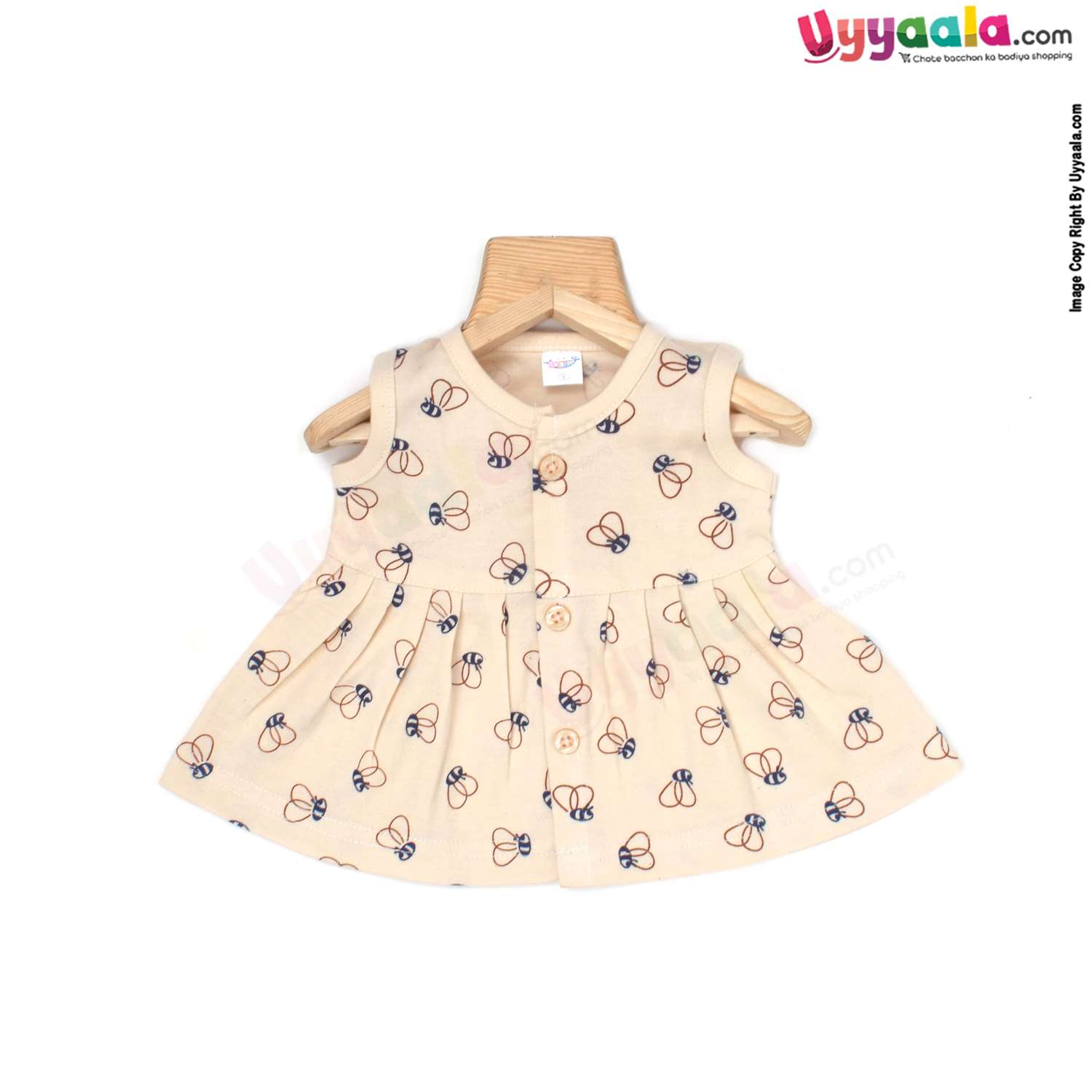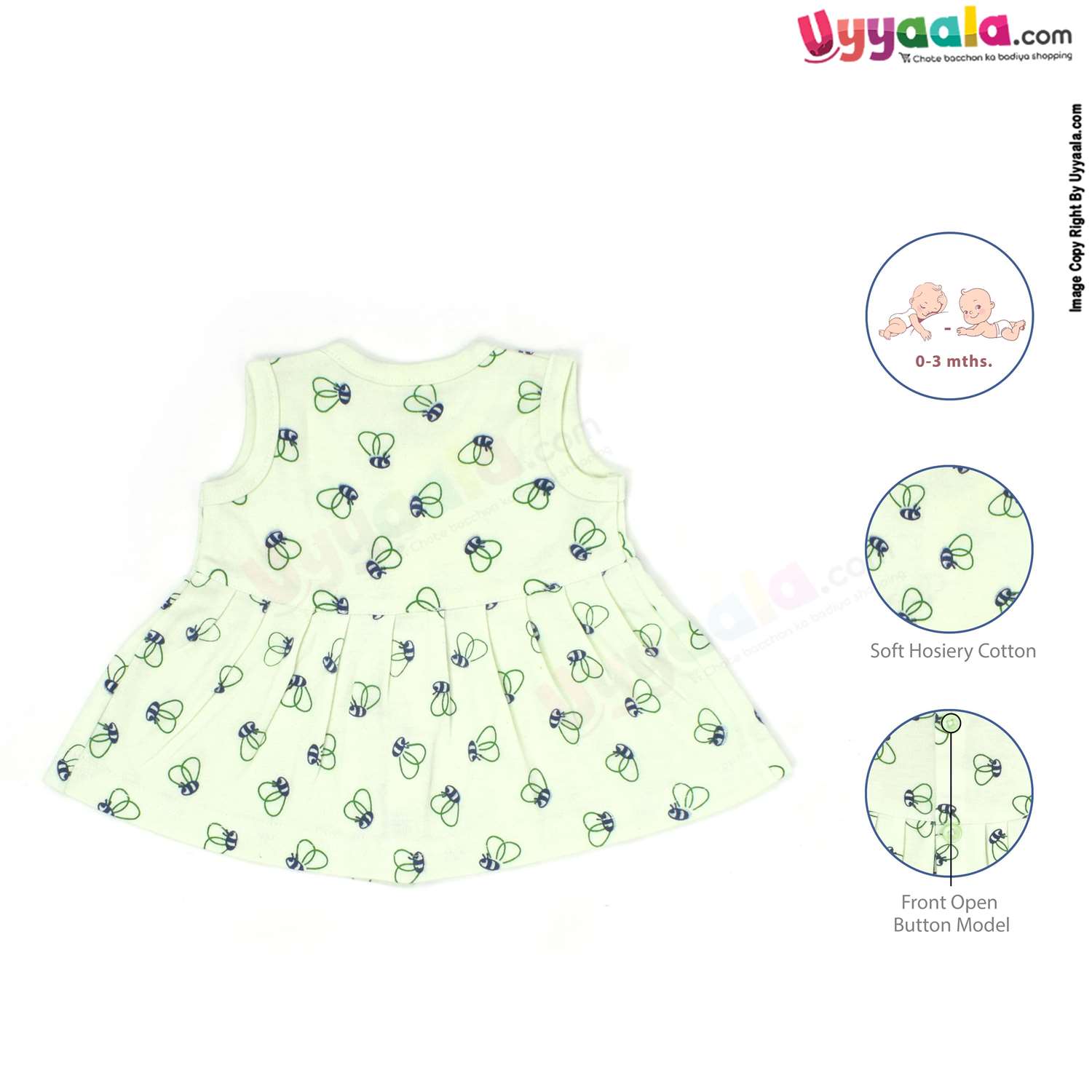 MOMMAS Sleeveless Newborn Baby Frock, Front Opening Button Model, Premium Quality Cotton Baby Wear, (0-3M)