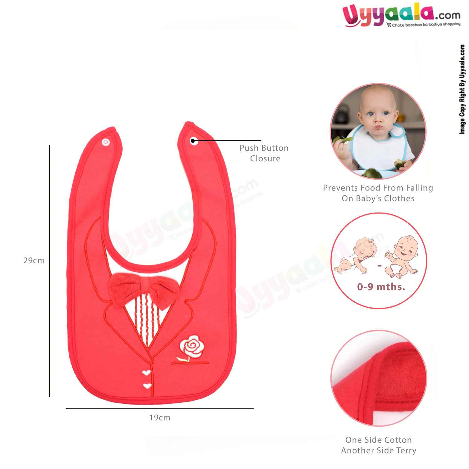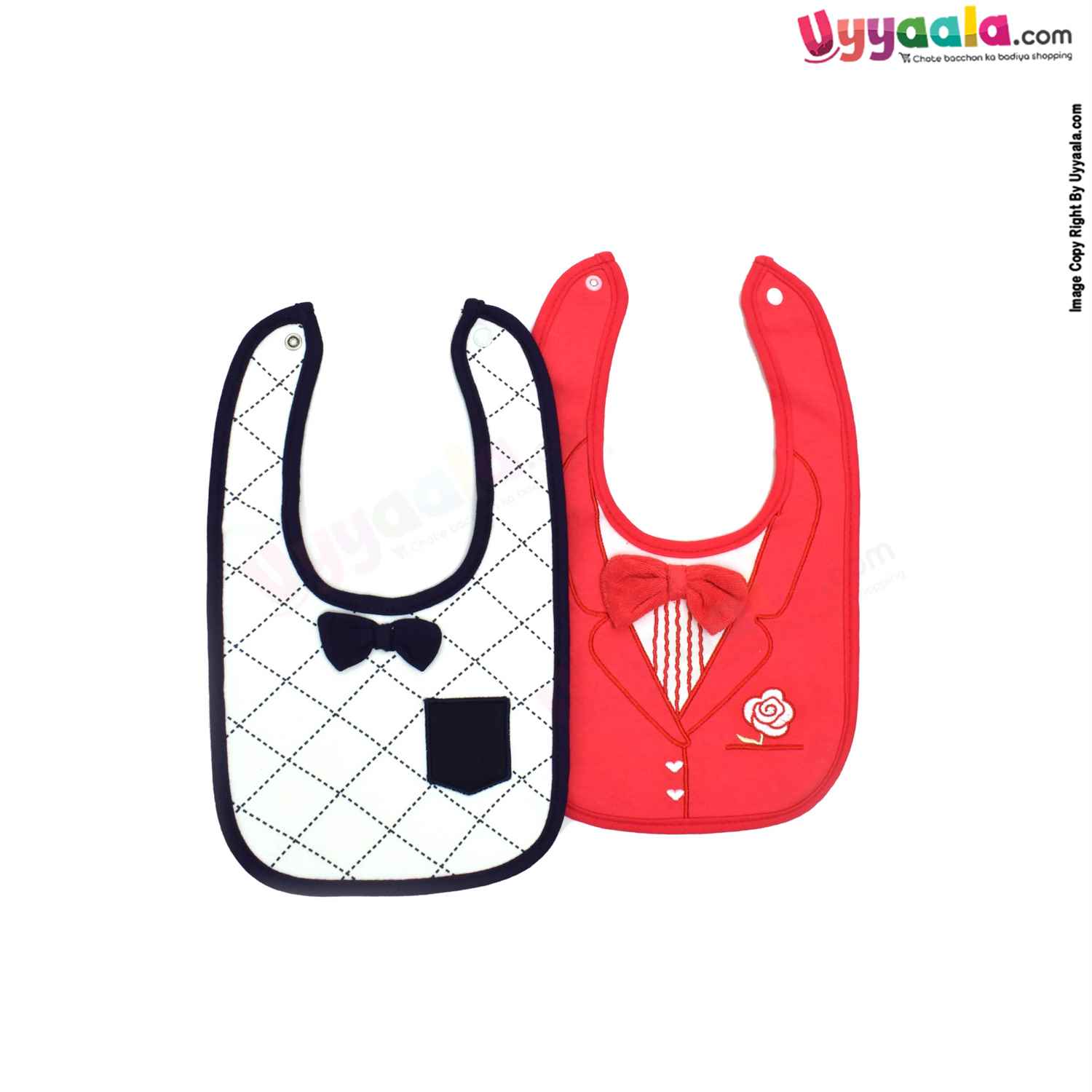 MOMS CARE Double Layered Baby Feeding Bib One Side Cotton & Other Side Terry with Bow for New Born Pack OF 2, 0-9 m Age, Size(29*19 cm)-Red & White