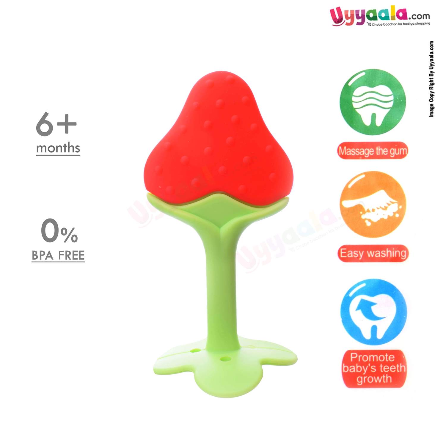 • Bright coloured Straw Berry shaped baby teether