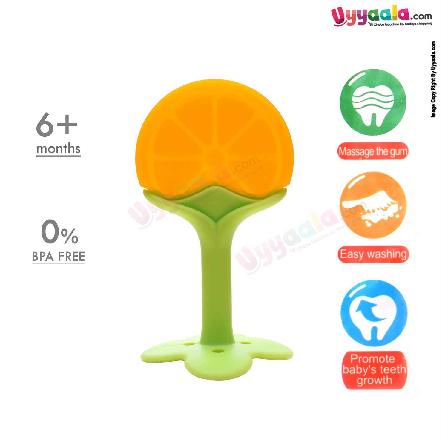 MUMLOVE Massage Silicone Baby Teether 6+m Age – Orange, Green