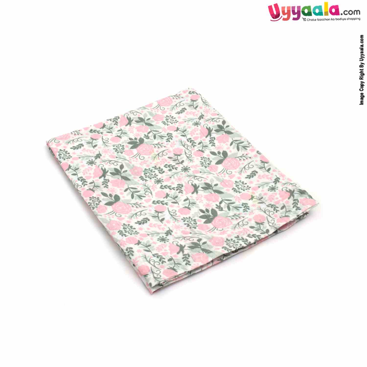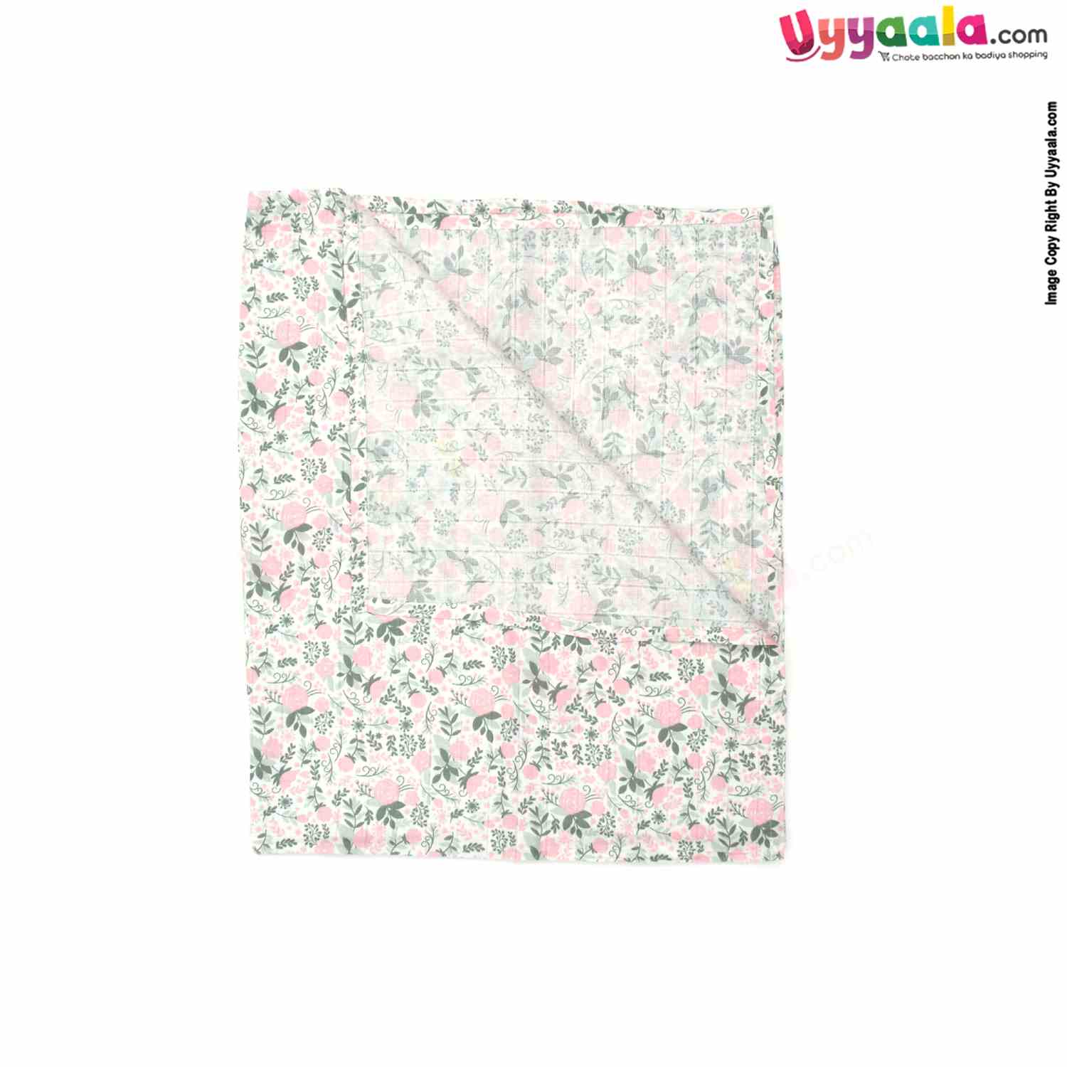 Muslin Cotton Wrapper for Babies with Floral Print 0+m Age, Size(112*91Cm)-White