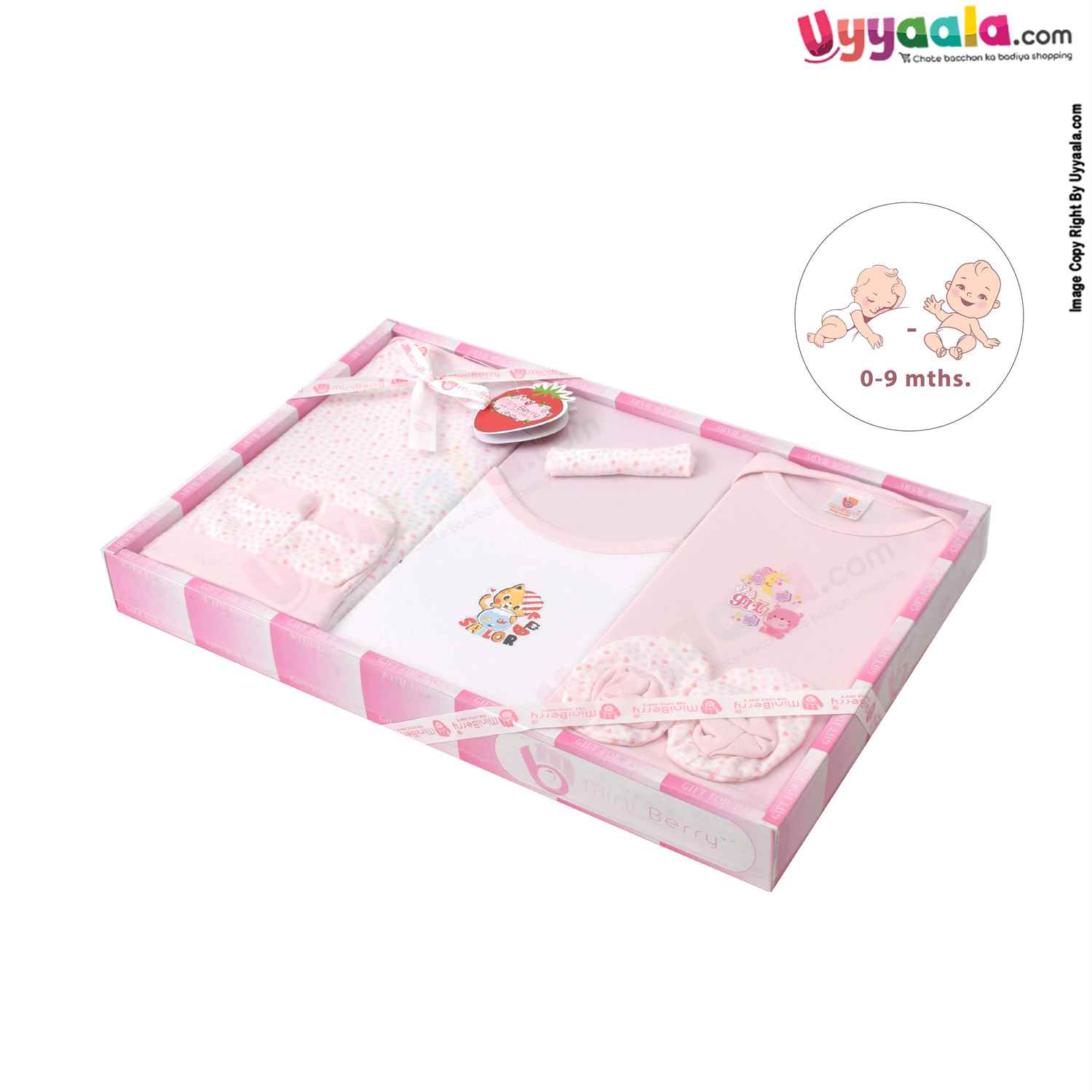 Newborn Dressing Gift Pack with 8pcs Set for New Born 0-9m- Peach