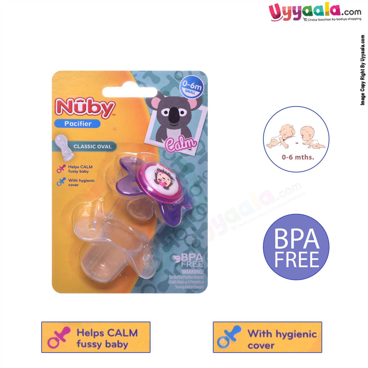 NUBY Classic oval soft pacifier with case – Violet, 0-6m