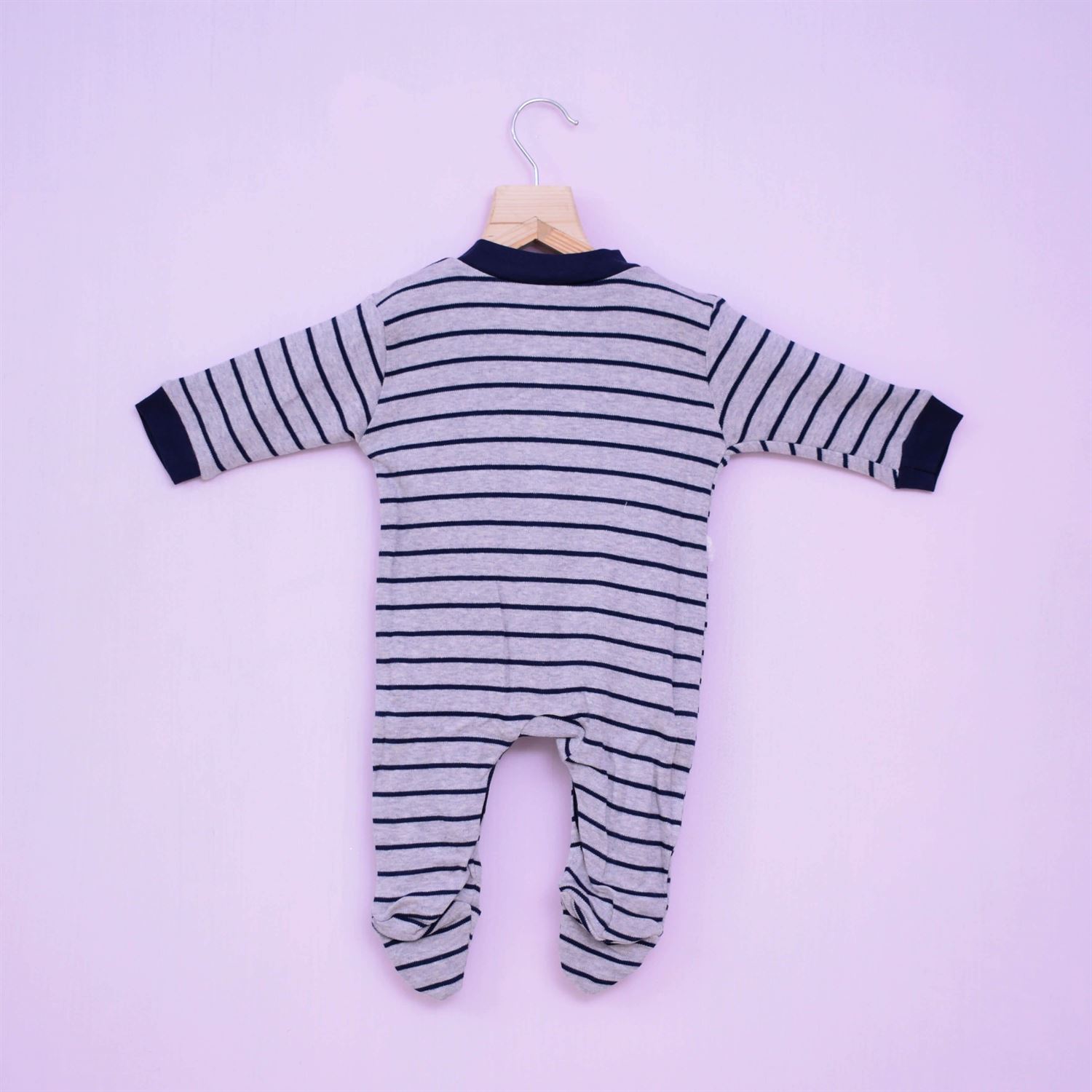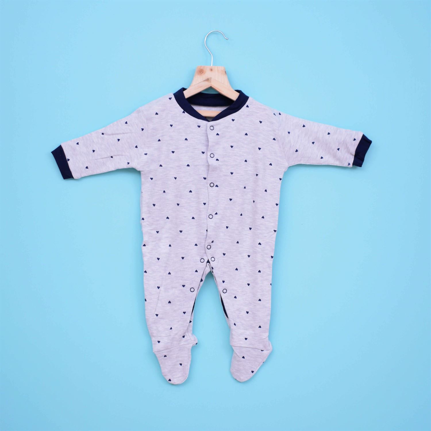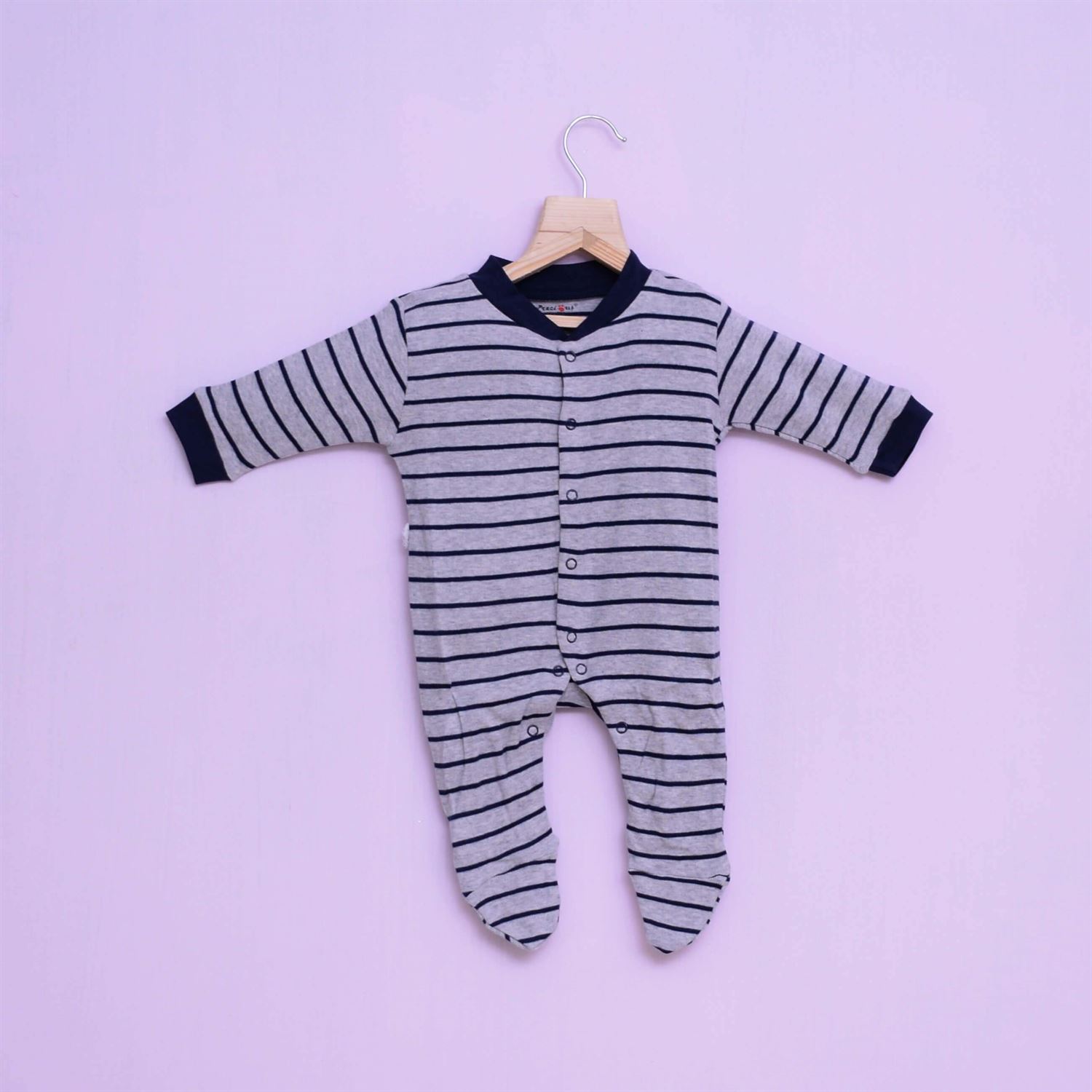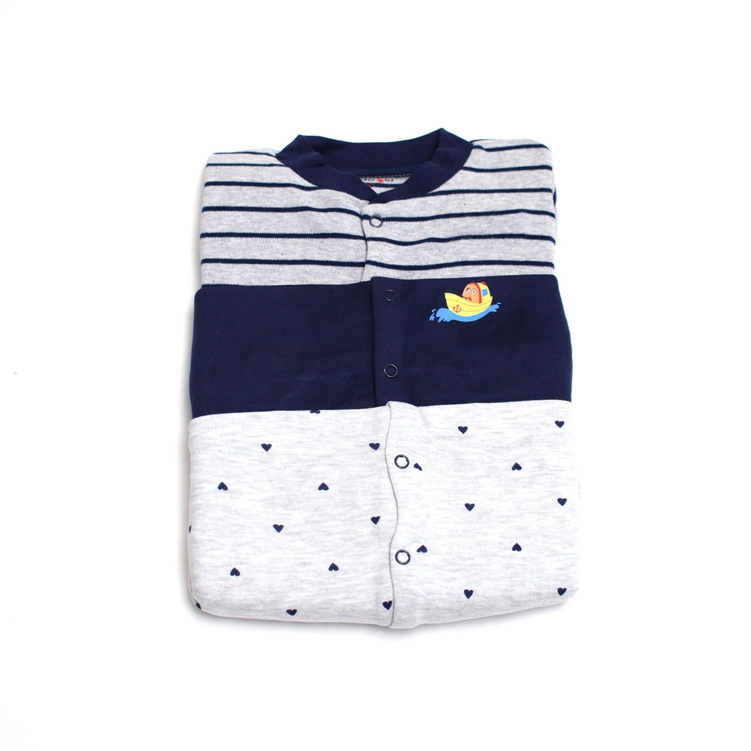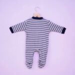 Precious One Sleep Suit Hosiery Stripes Print Gray & Blue, Plain Blue and Heart Printed Gray 3P Pack 0 – 3m