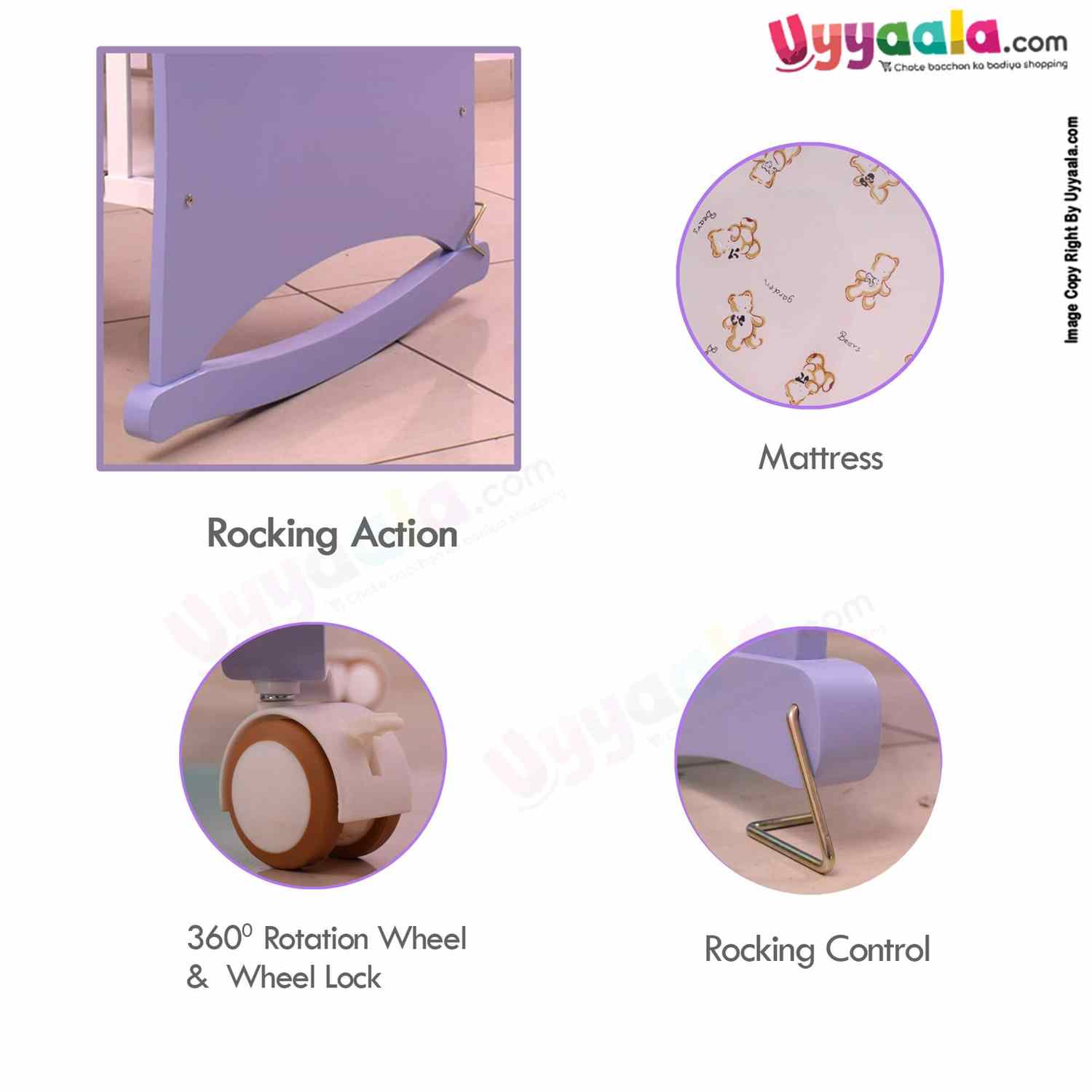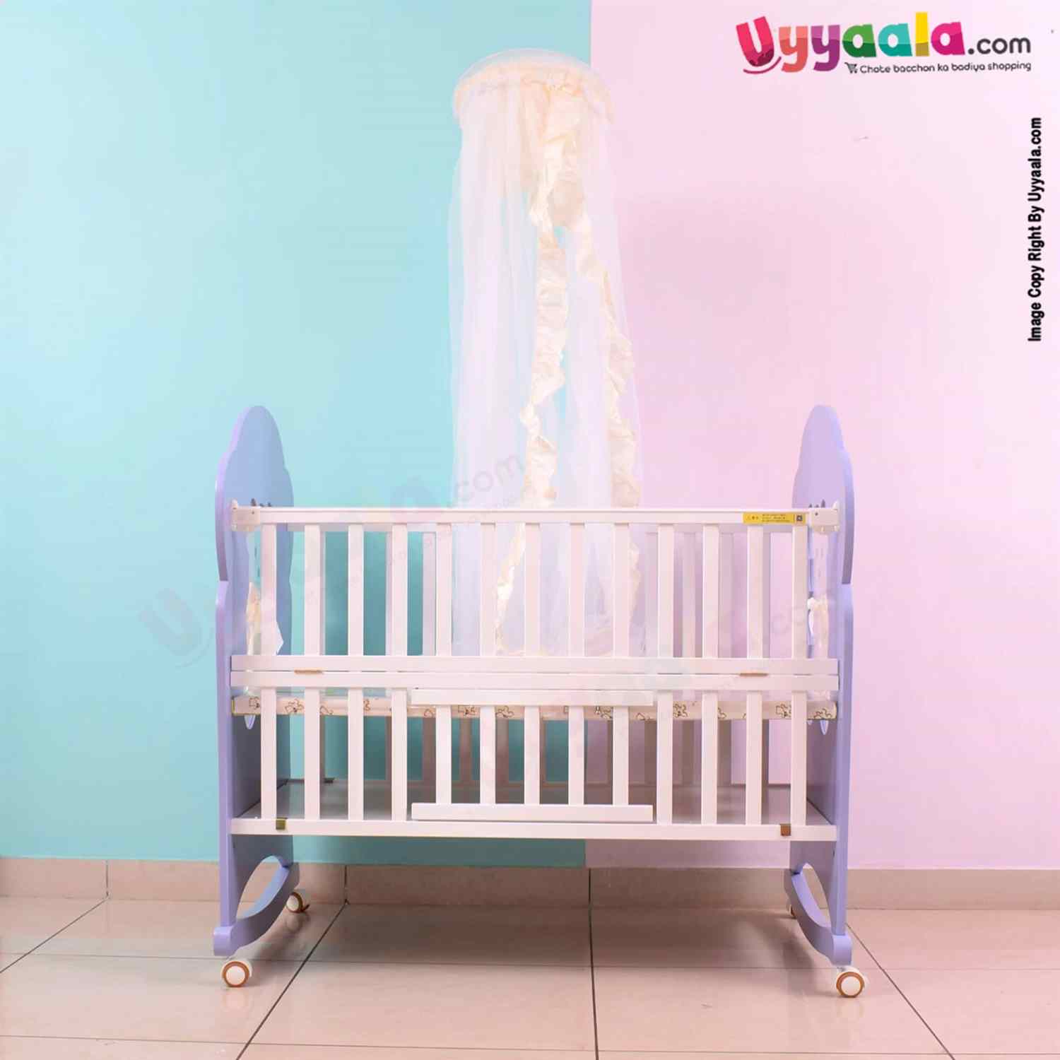 Premium Baby Cradle Cot & Rocker with Canopy Mosquito Net 0+m Age, Purple-White