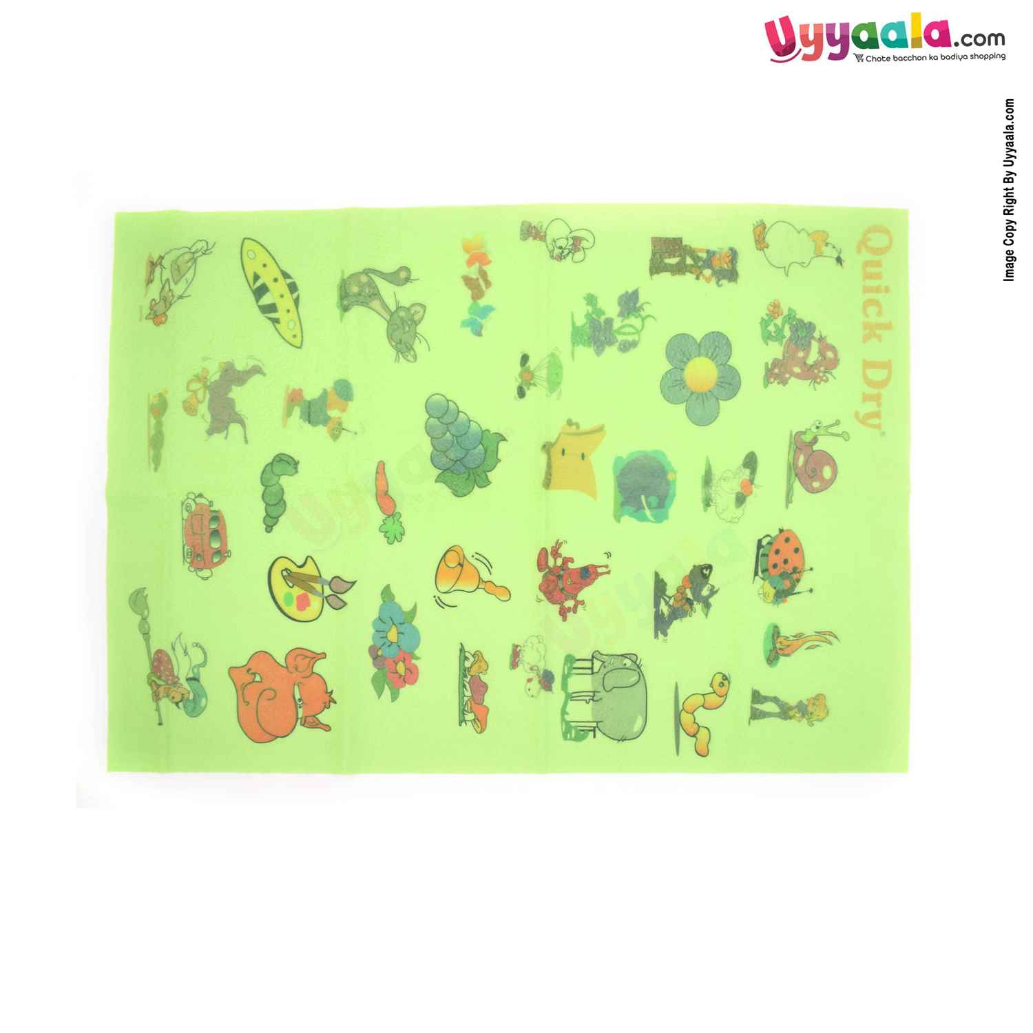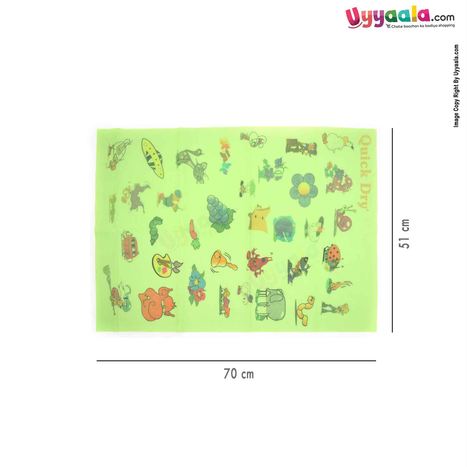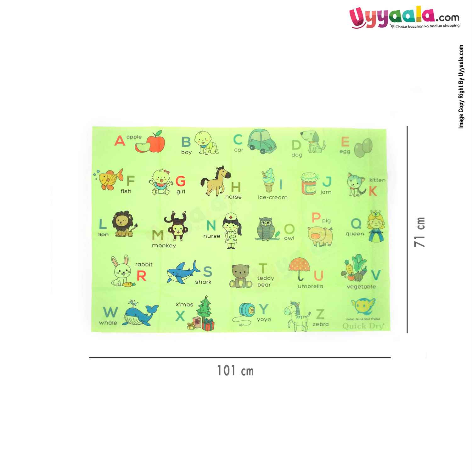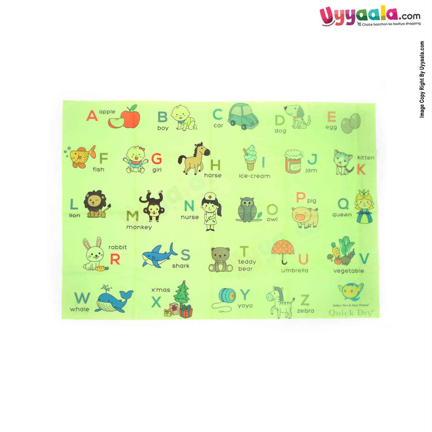 QUICK DRY Waterproof baby bed Protector Dry Sheet for Babies with A to Z Alphabets Print – Light Green Color