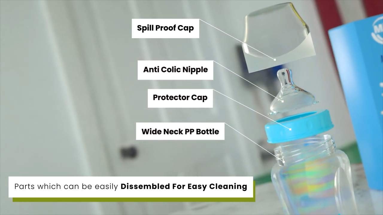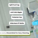 Spill-Proof Cap: Transparent cap to keep the water/milk spill free while you take the bottle outdoors in a purse or diaper bag.
