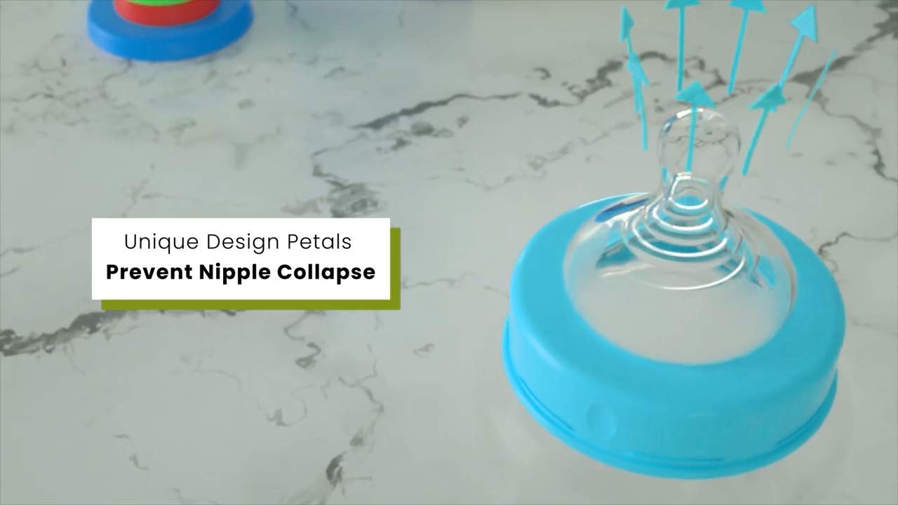 Top Grade Nipple: Soft silicone BPA Free wide nipple to mimic the breast of a mother, while the grooves on it makes it Anti Collapse and prominent for better feeding experience.