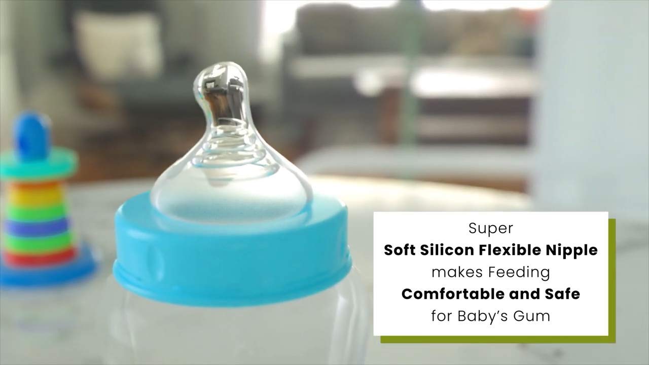 Wide Neck Bottle: Baby feeding bottle with a wide neck is perfect for a wider nipple that mimics the look and feel of the breast and makes the baby feel comfortable while feeding.
