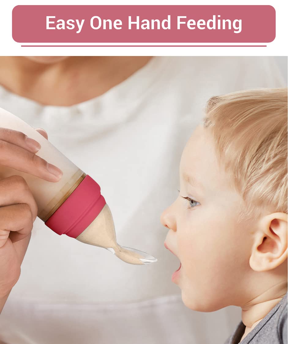 • Squeezy baby bottle feeder with soft silicone spoon tip