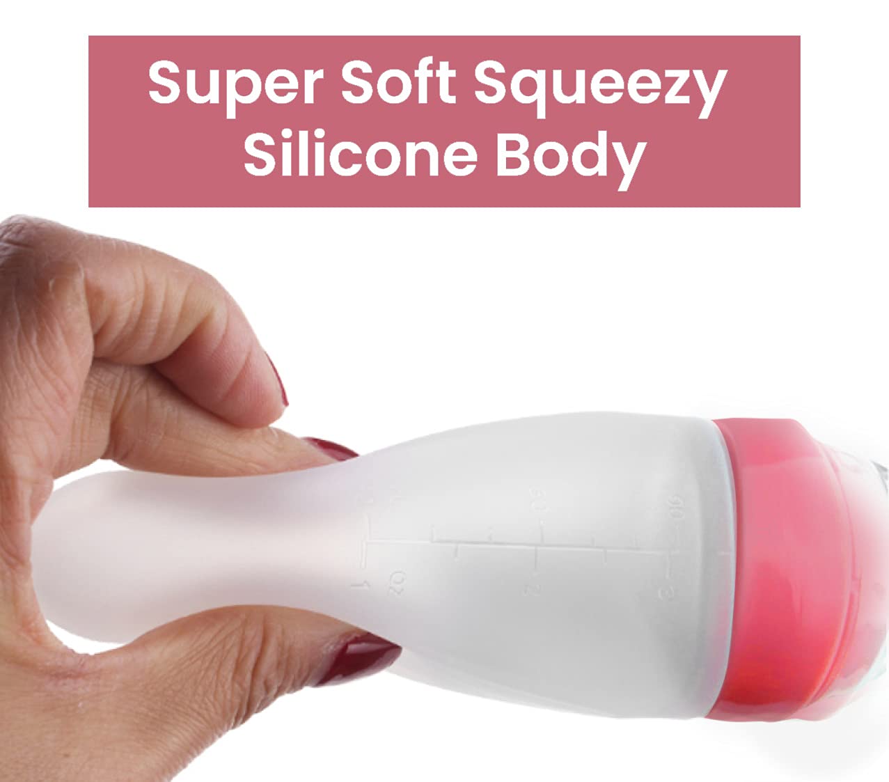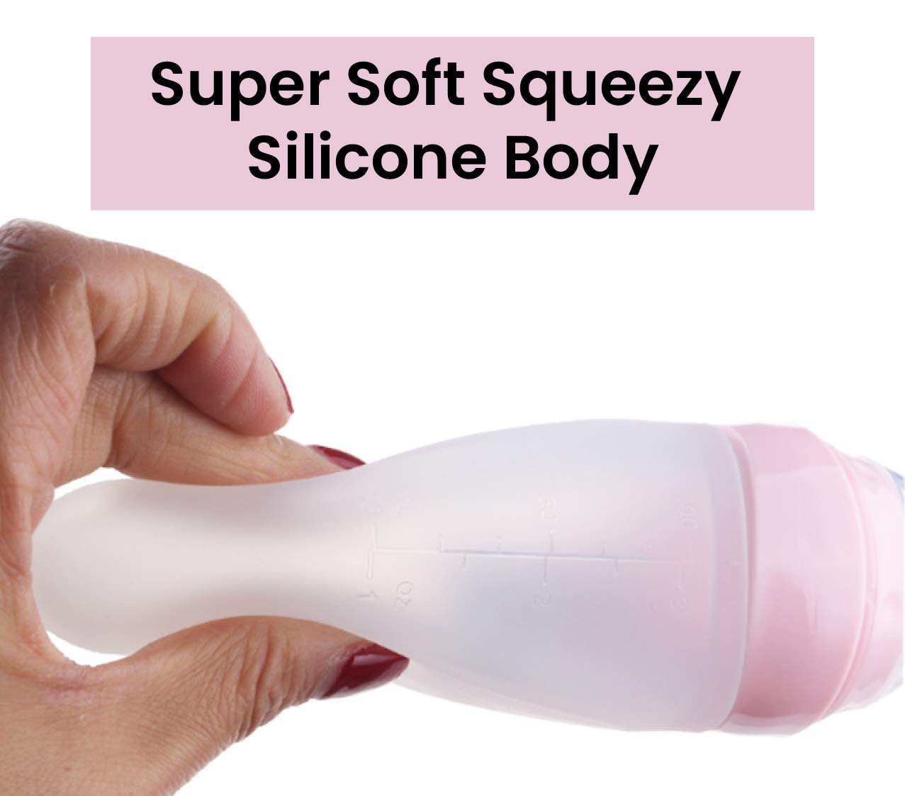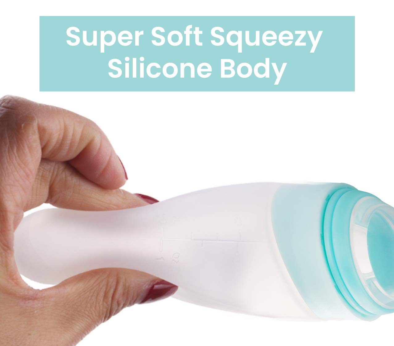 • Squeezy baby bottle feeder with soft silicone spoon tip