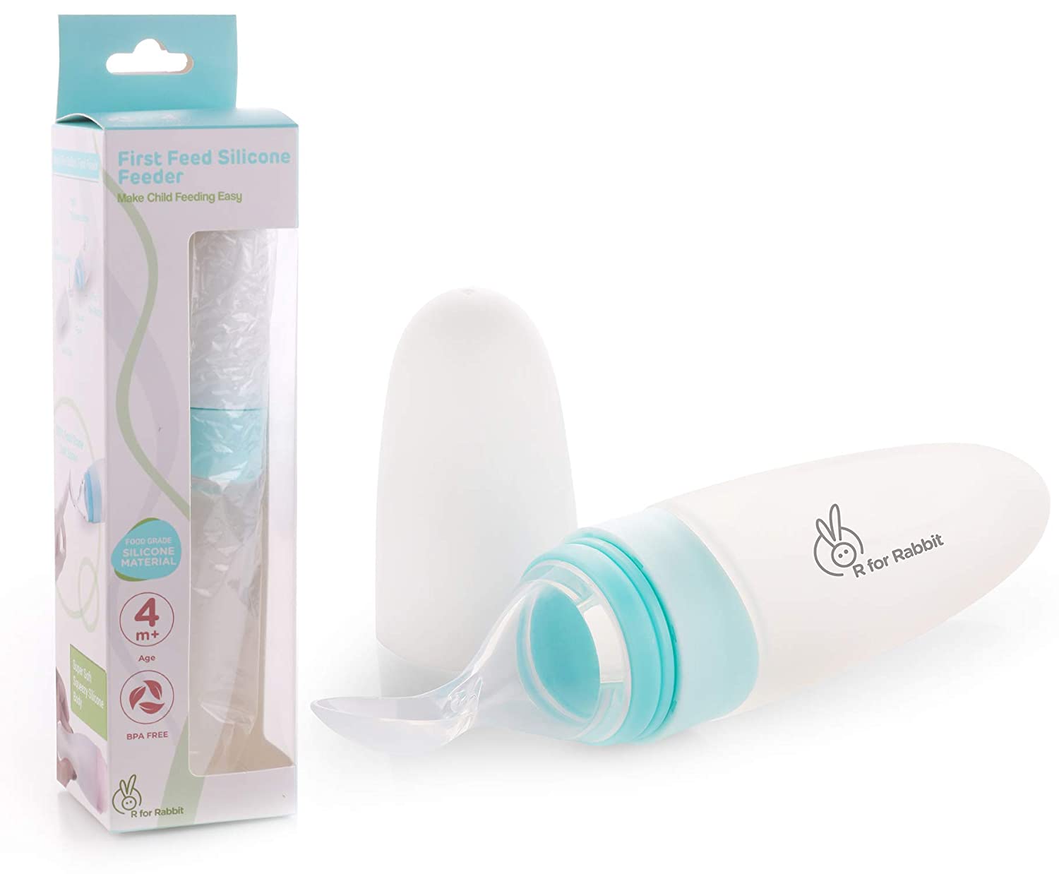 R for Rabbit First Feed Silicone Feeding Spoon for infant Baby 4 months +