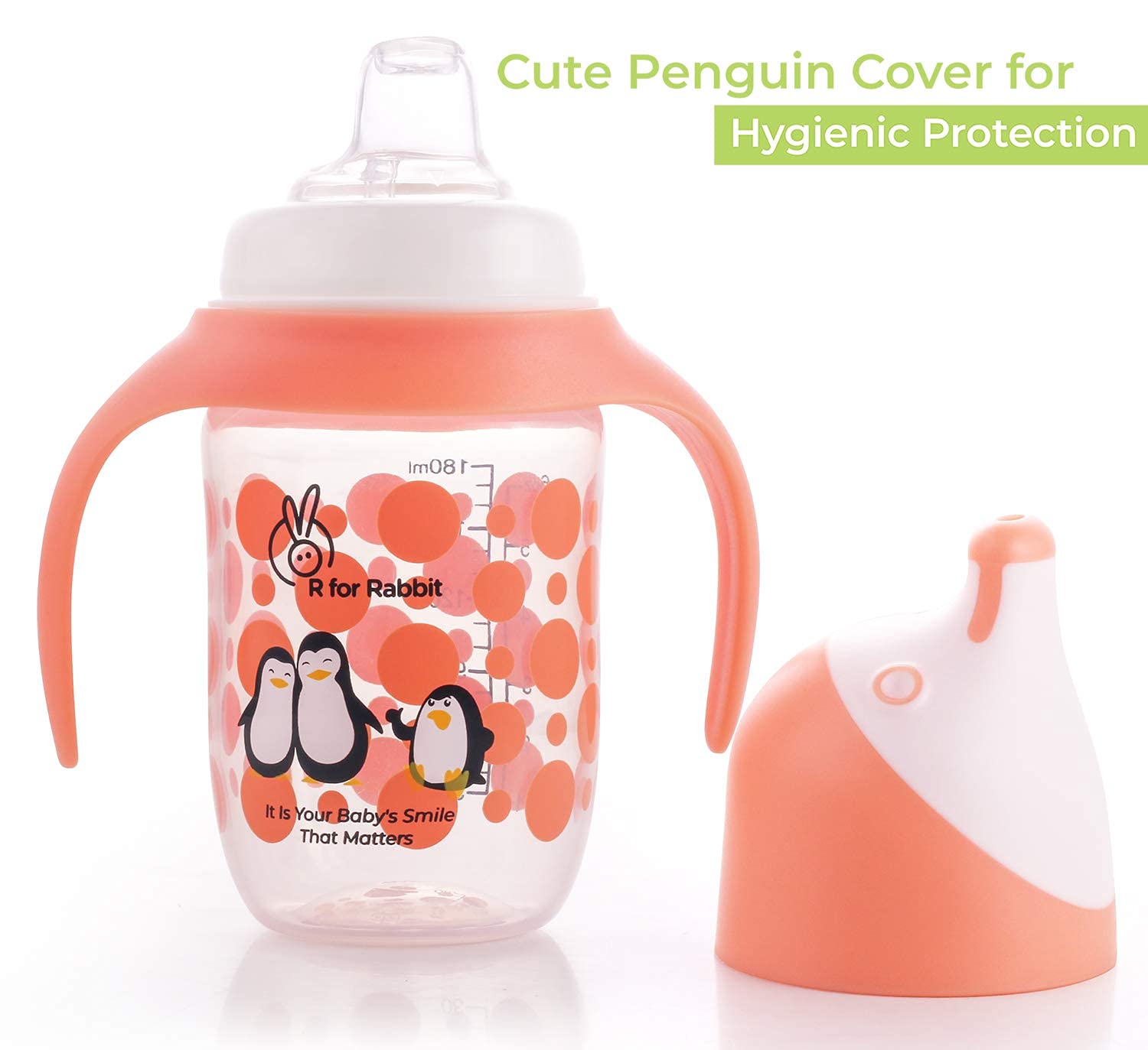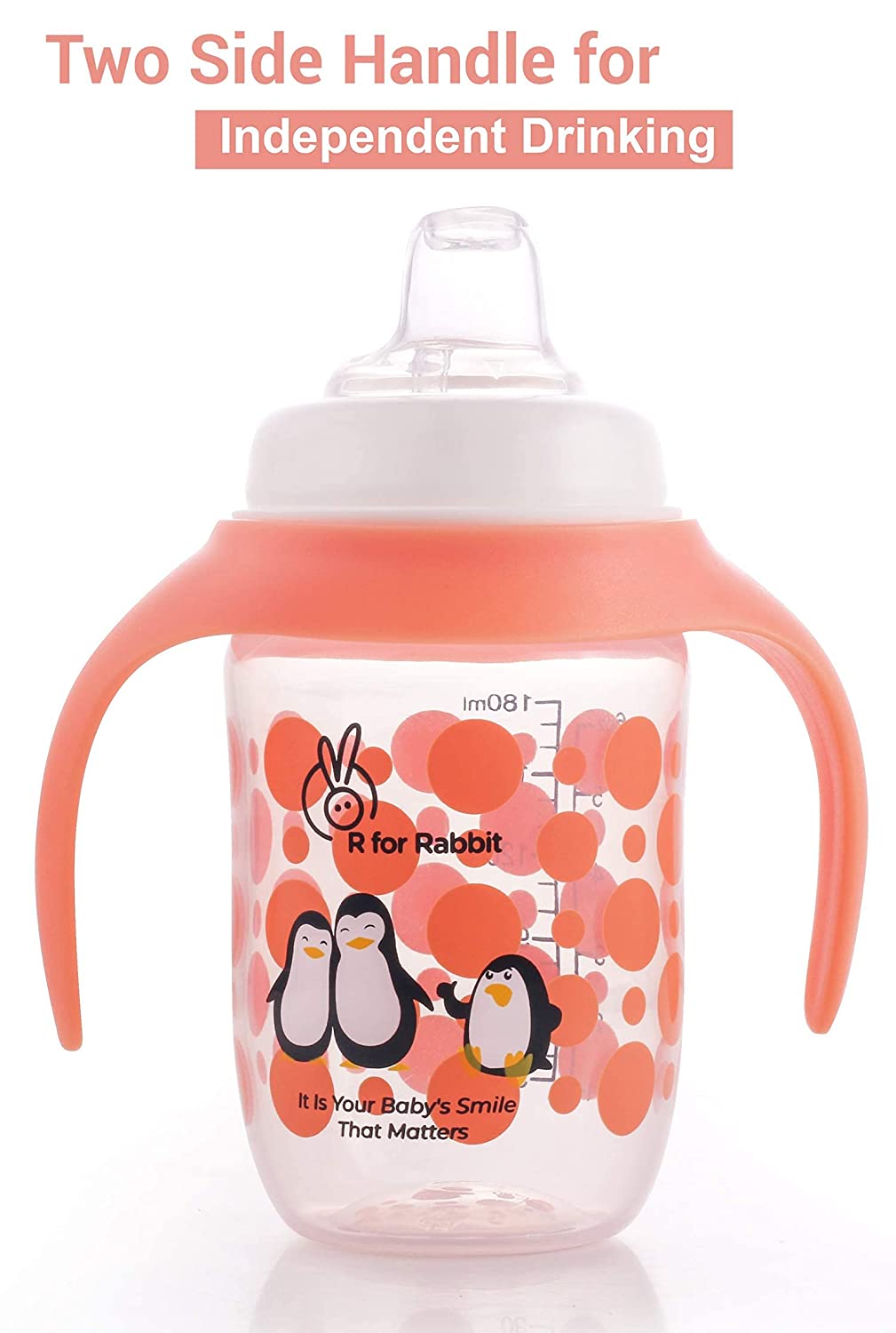 Easy gripping: Child can independently drink liquids from a spout cup by holding it from both the sides by the smooth handles.