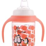 Penguin Spout Cup is made of BPA Free and Phthalate Free Poly Propylene Material & the soft spout is made of soft silicone material which is absolutely safe for your cute little one. The cute penguin-shaped design makes the bottle more appealing as a toy to kids and makes it more adapted as a playful cute pal by the child. 2 side handles help the child to be independent of parents and enjoy the liquid time on his/her own. The soft silicone spout is flexible so that the child gum’s or cute lips will do not get any harm. The spout cup is designed that it is leak-proof and make the drinking time hassle-free for baby and parent!