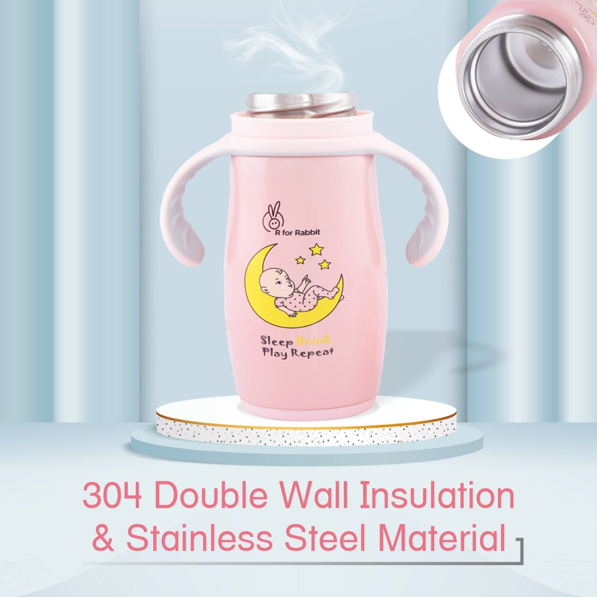 R FOR RABBIT Steebo Crescent Stainless Steel Feeding Bottle With Twin Handle – Pink, 240ml