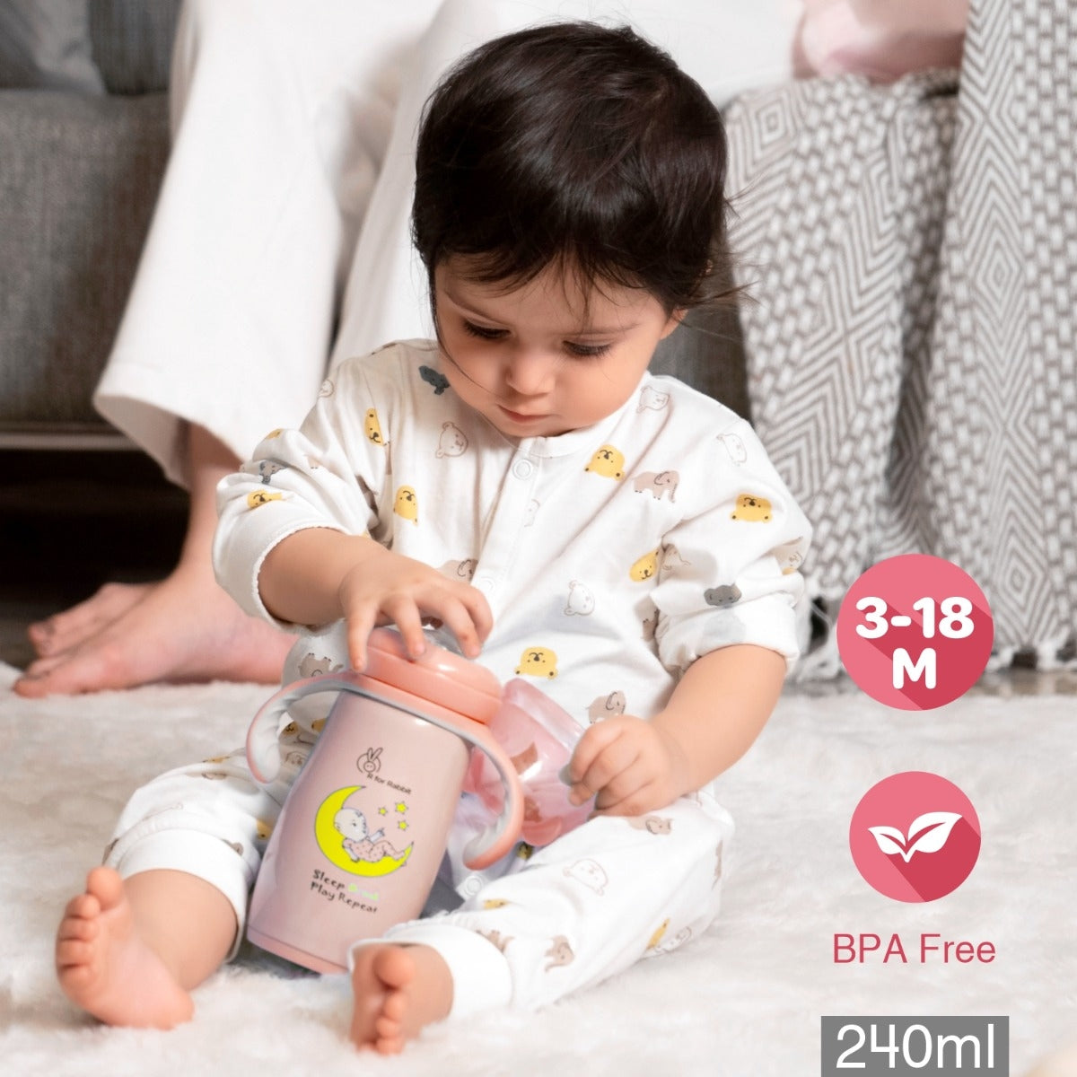 Safety 1st: R for Rabbit Steebo Crescent Feeding Spout Sipper is BPA as it is made with PP and Stainless Steel which is super safe for baby’s usage.