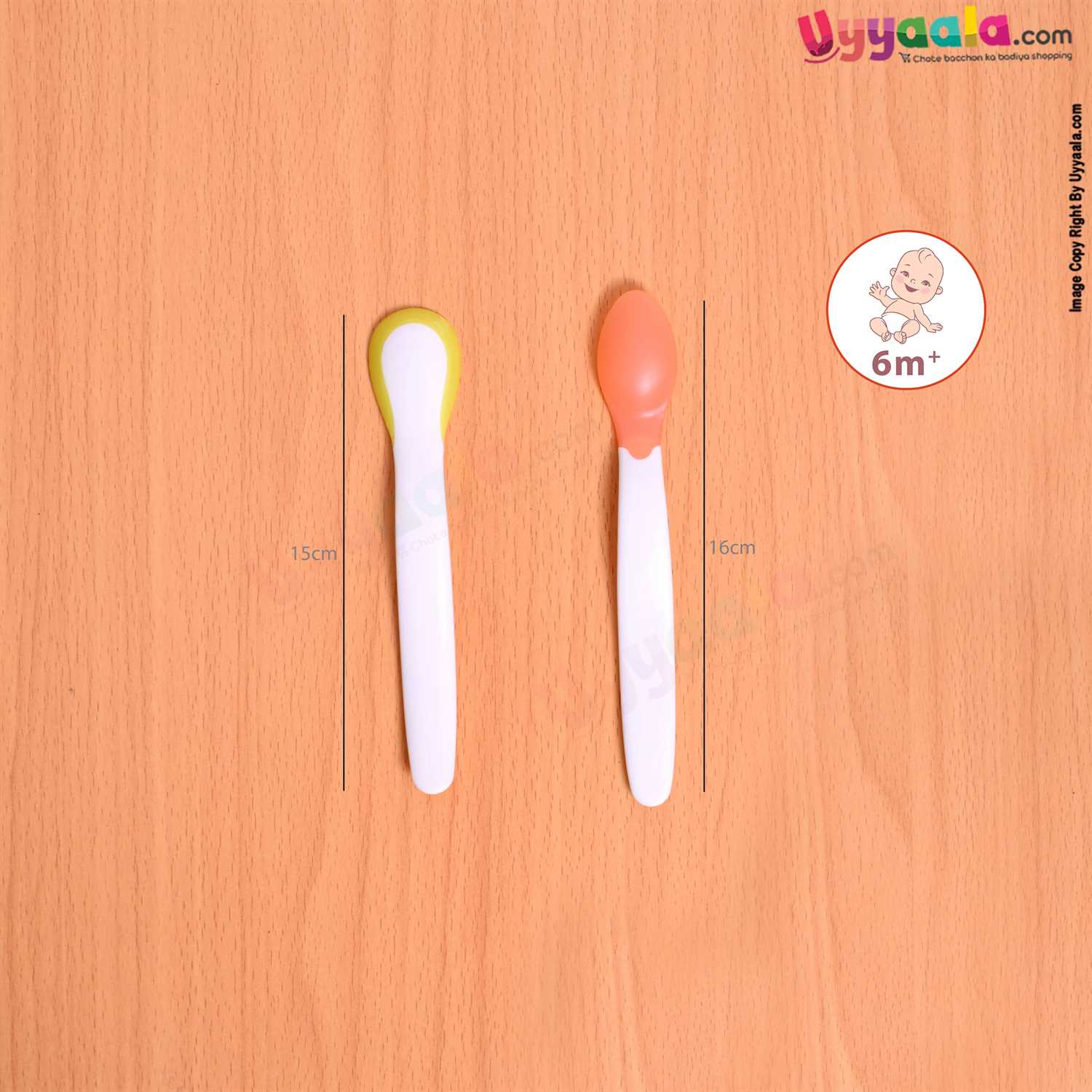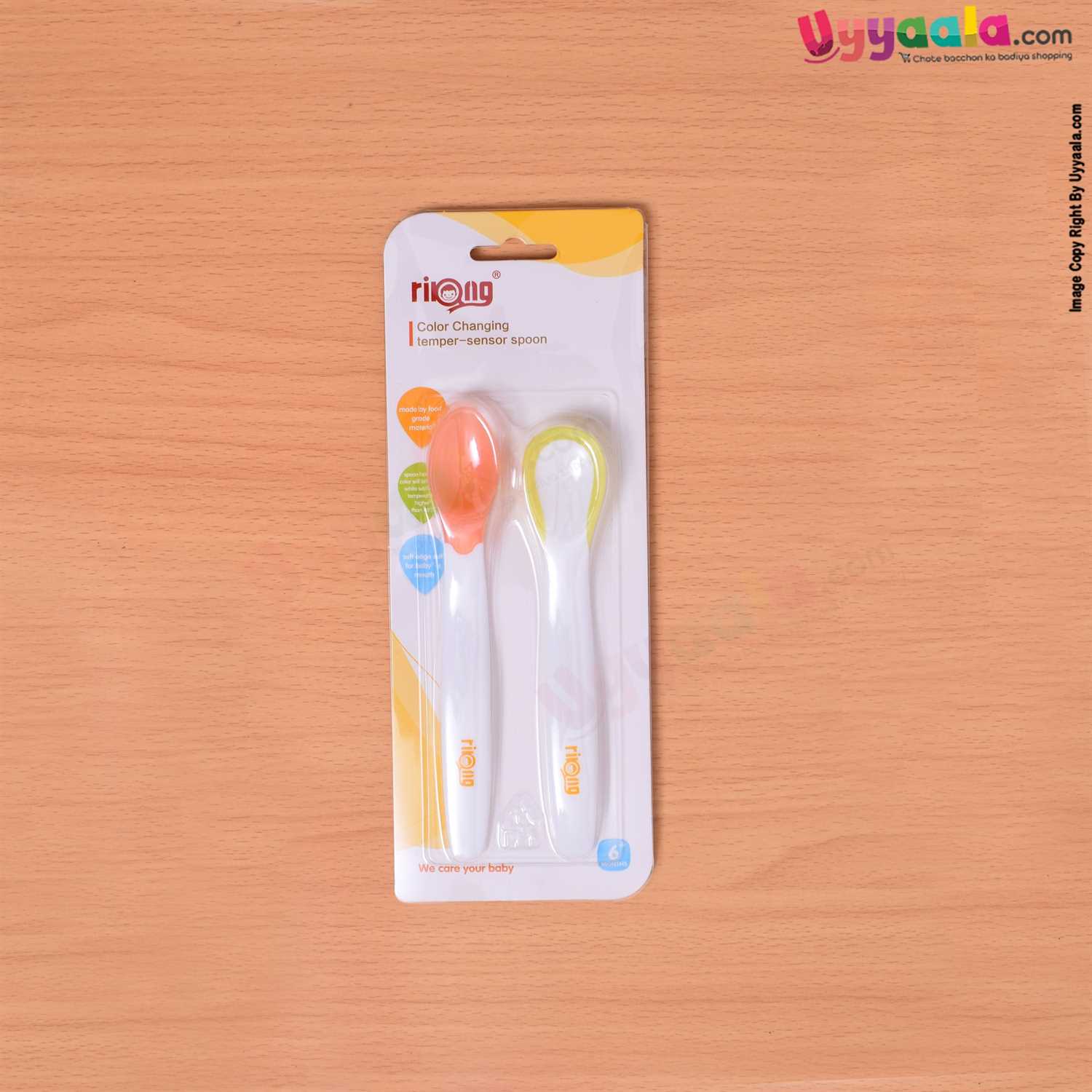 RIKANG Heat Discoloration Silicone Spoons Twin Pack For Babies 6+m age, Yellow & Pink