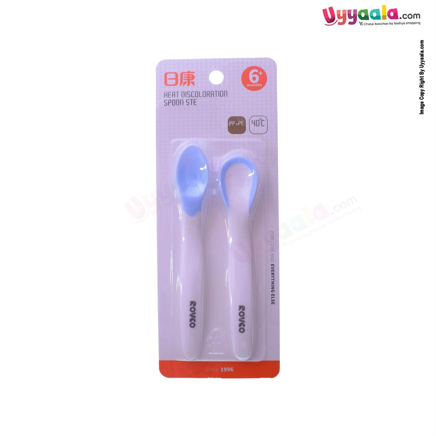 ROVCO Heat Discoloration Silicone Spoons Twin Pack For Babies 6+m Age – Blue
