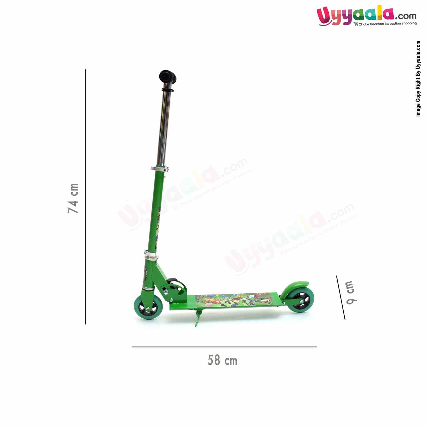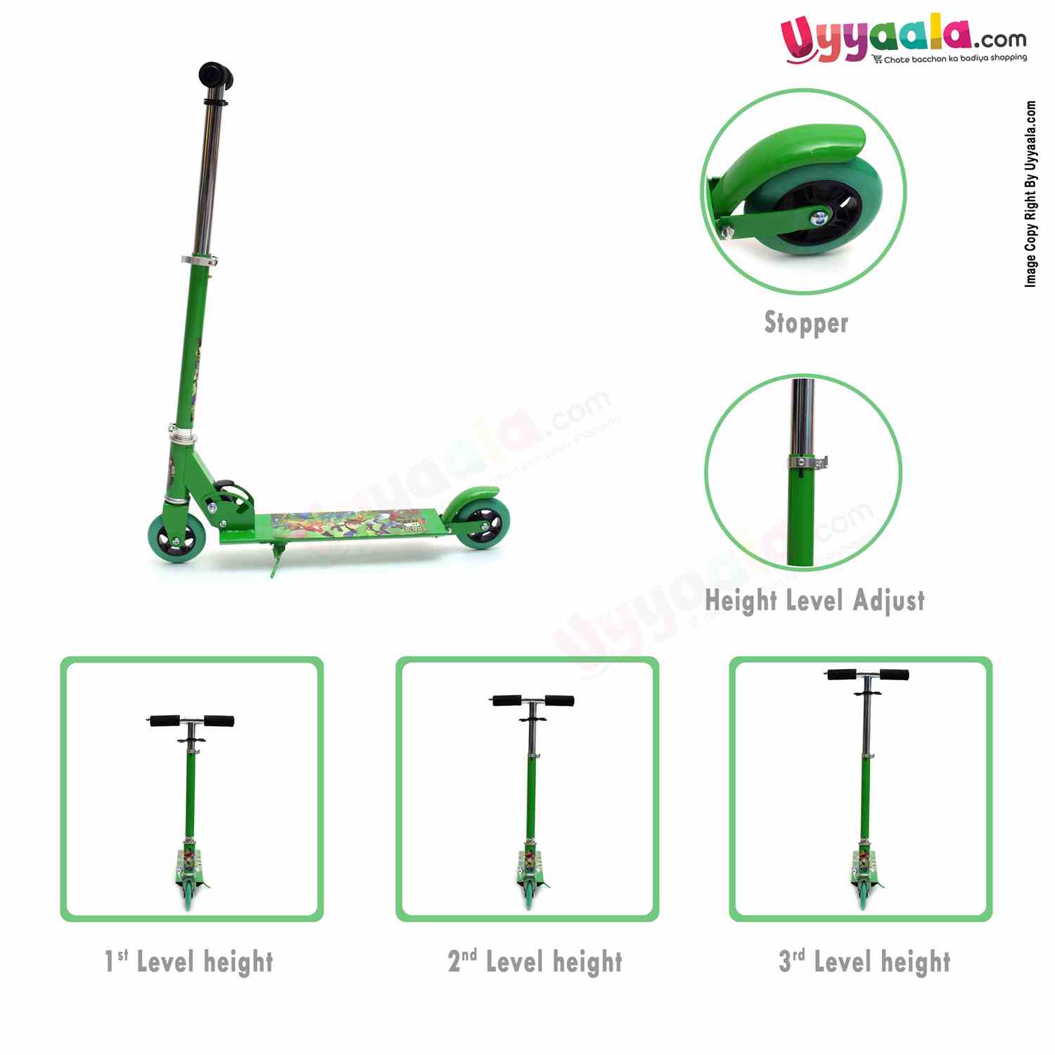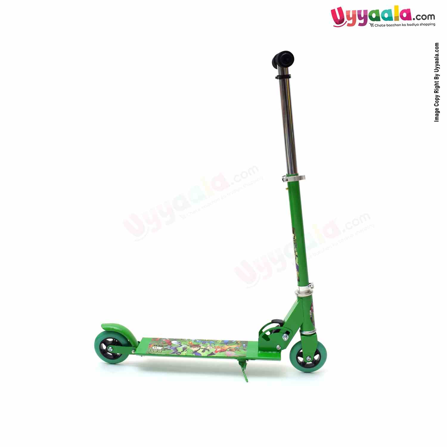 Skating Scooter(Foldable) with 3 Wheels, Height Adjustment & side stand for Kids 4+Y Age, Green