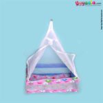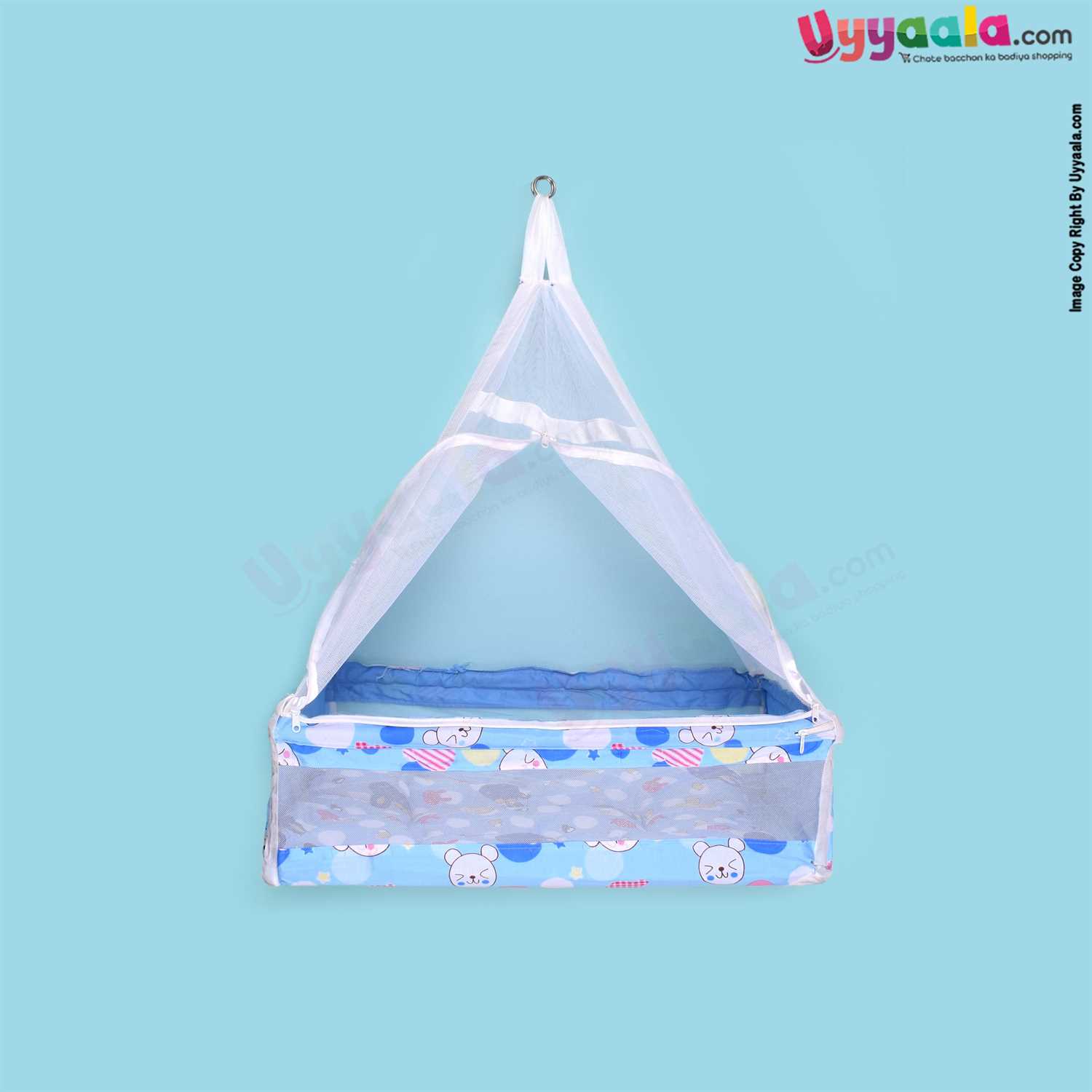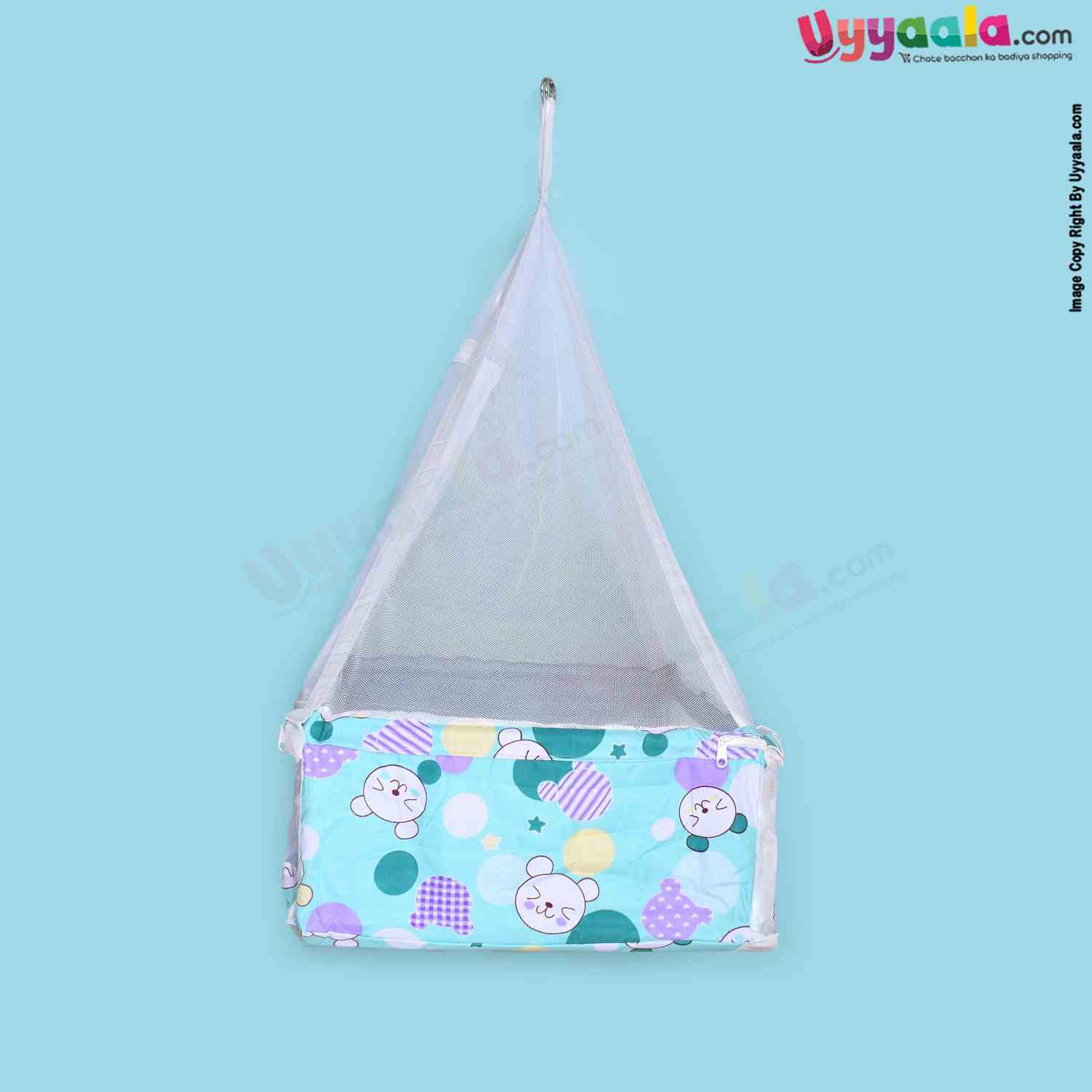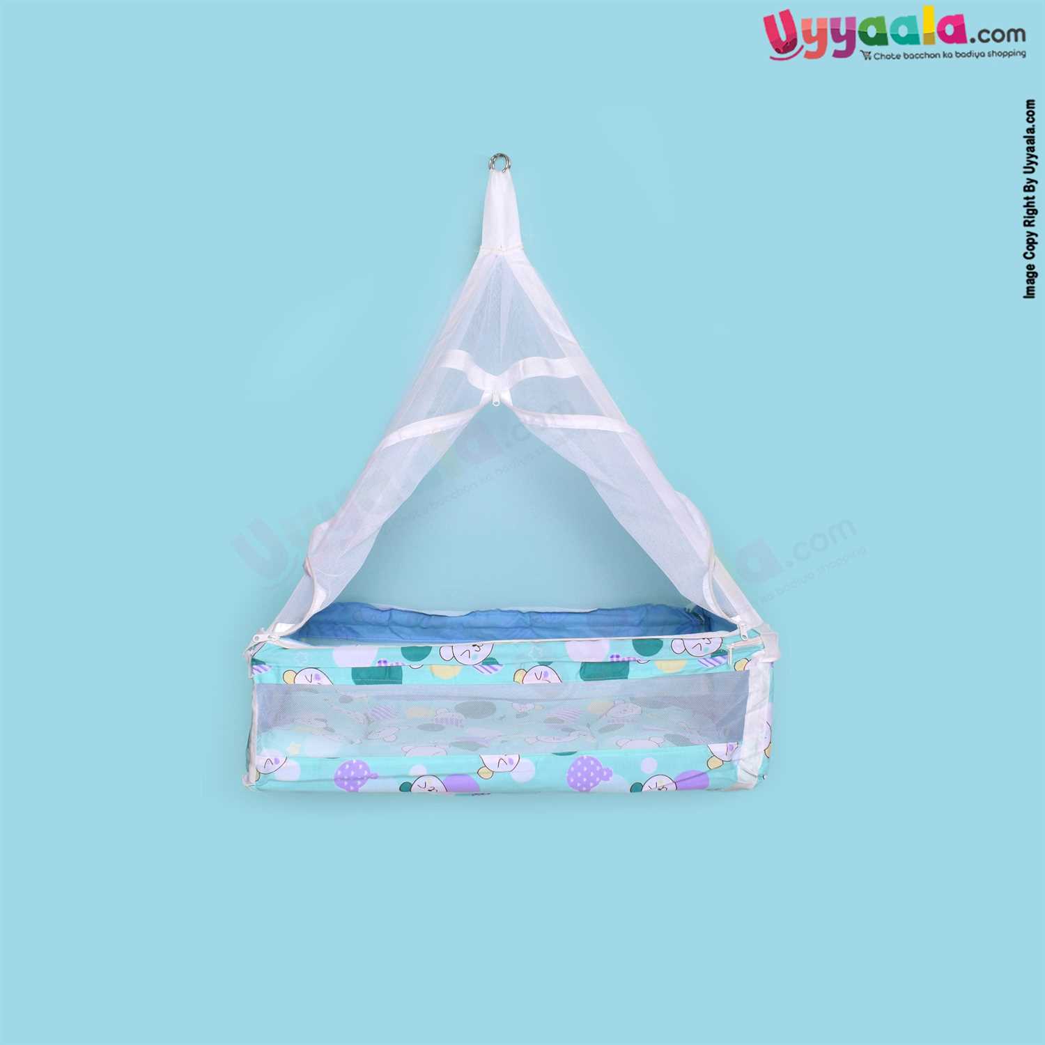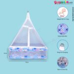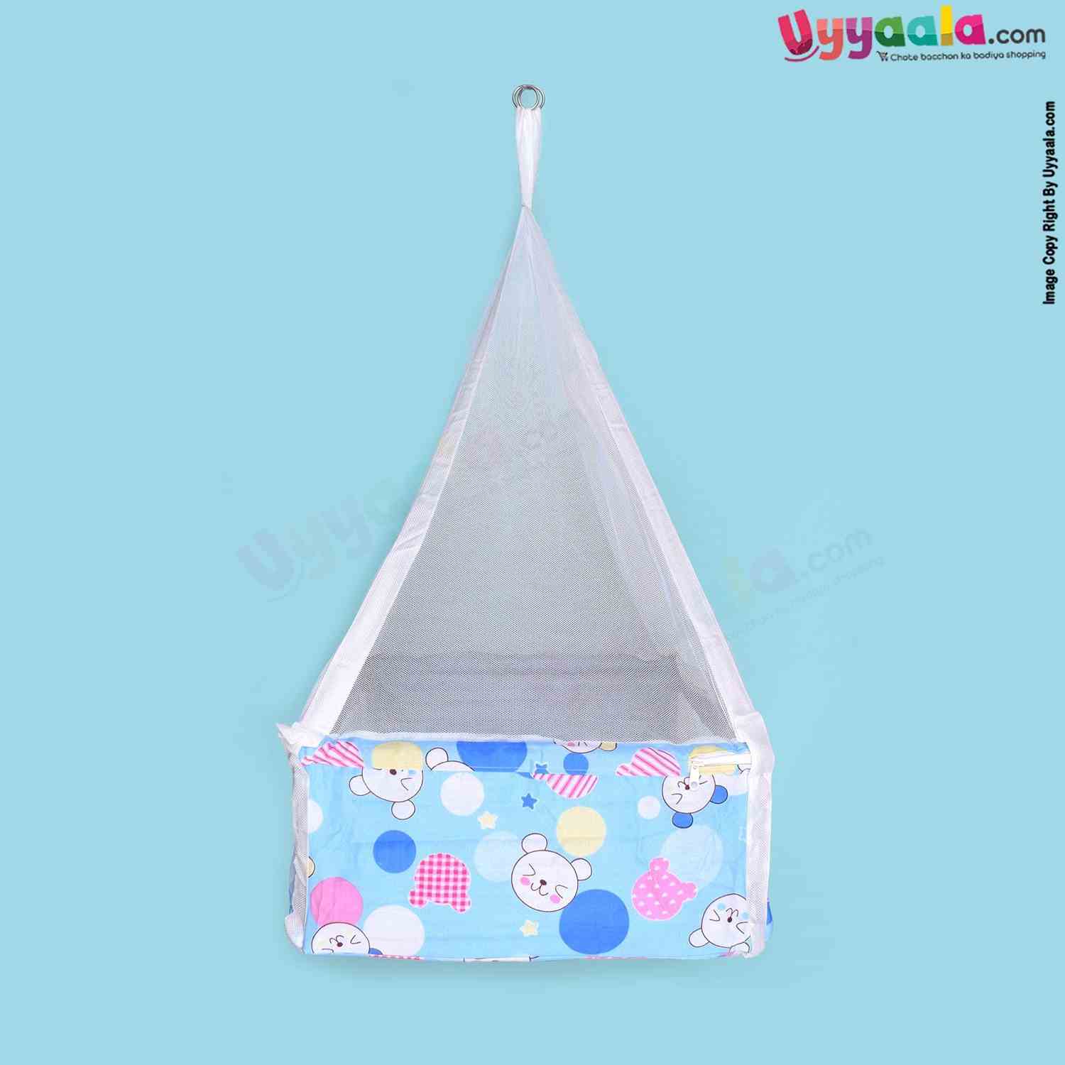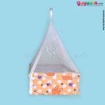 SNUG UP Baby Hanging cradle (Zola) Box Model with Steel Pipes & zipped Mosquito Net, Detachable Bed, premium quality, Blue with Cat Print, 0m+ upto 15kgs