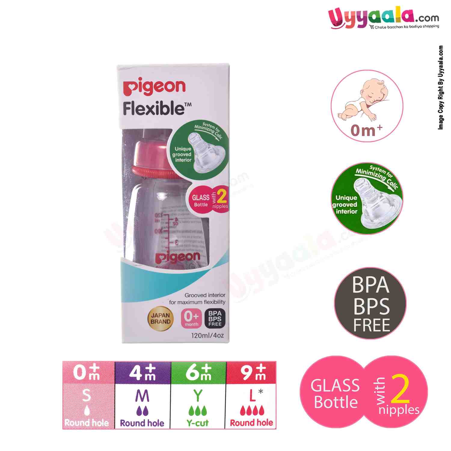 PIGEON Glass Feeding Bottle Narrow Neck Square Base Flexible 240ml 9+m Age