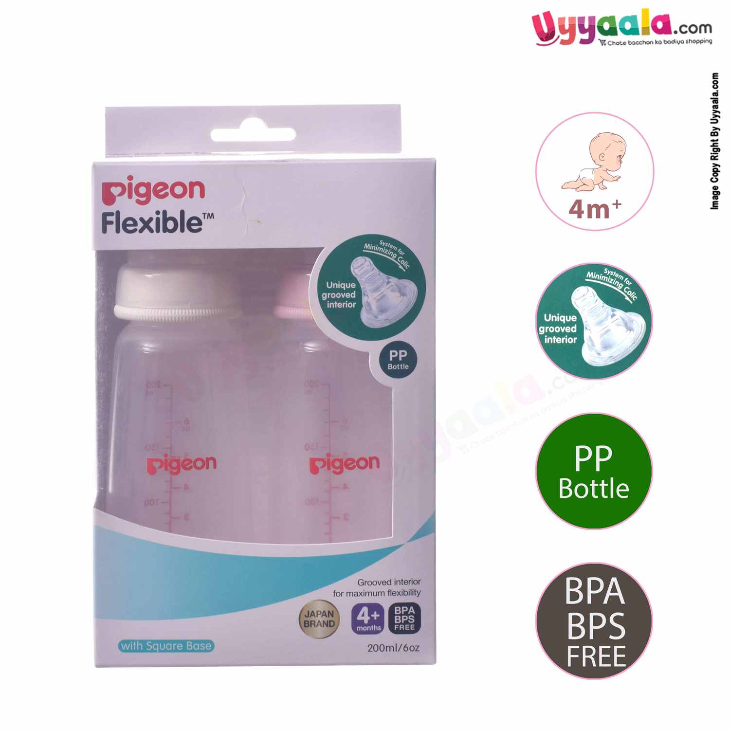 PIGEON Feeding bottle Narrow Neck Square Base Flexible 4+m Age - 200ml
