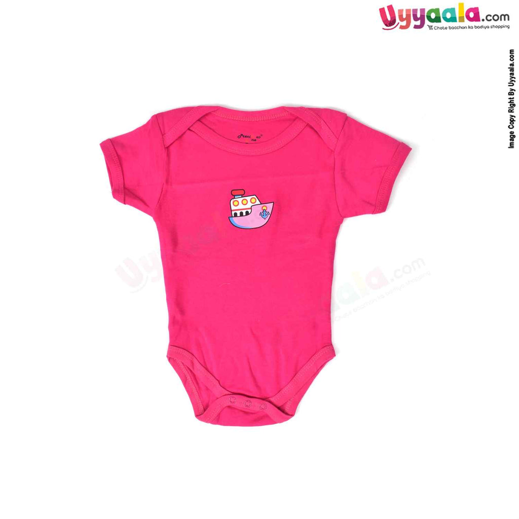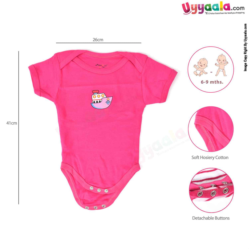 Precious One Short Sleeve Body Suit 100% Soft Hosiery Cotton - Pink with Boat Print (6-9M)