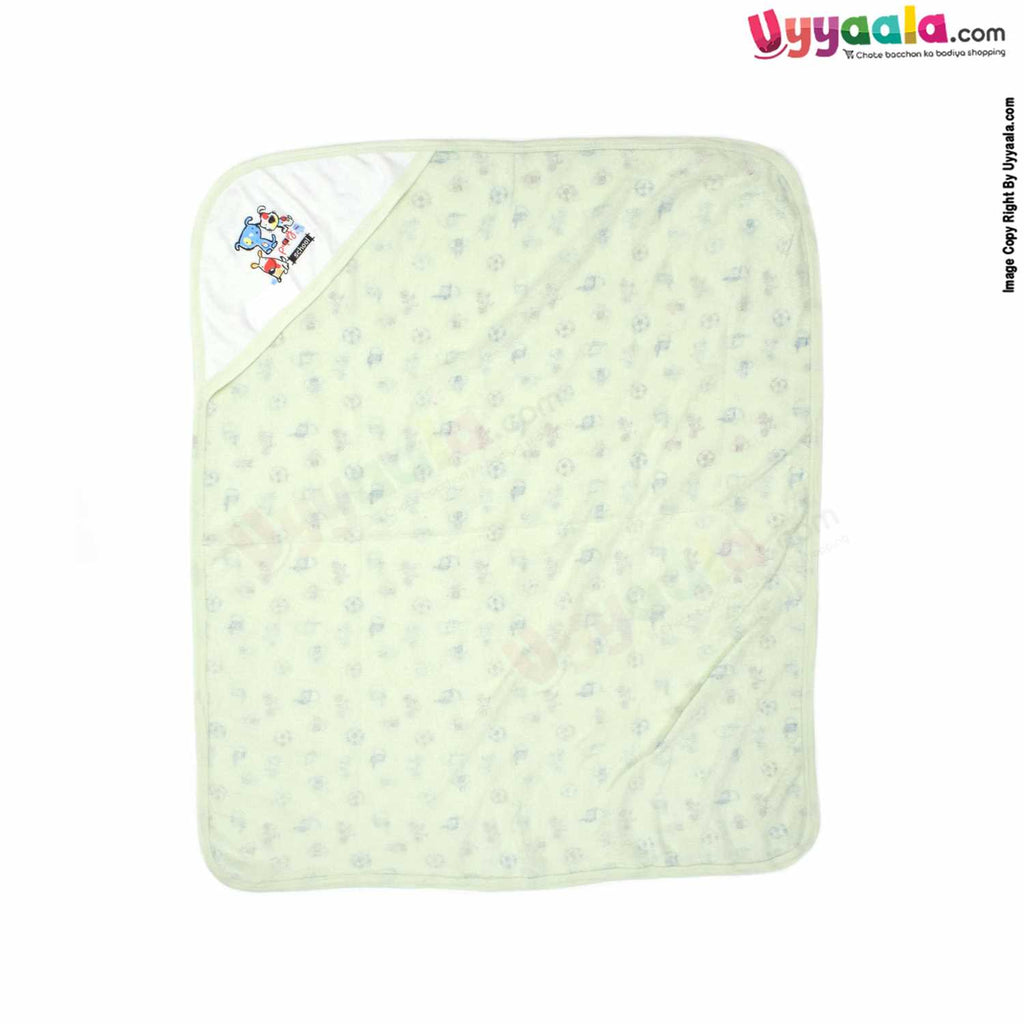 ZERO Baby Bath Soft 100% Cotton Towel with Foot Ball & Cycle Print 0+m Age, Size (84*76cm)- Light Green